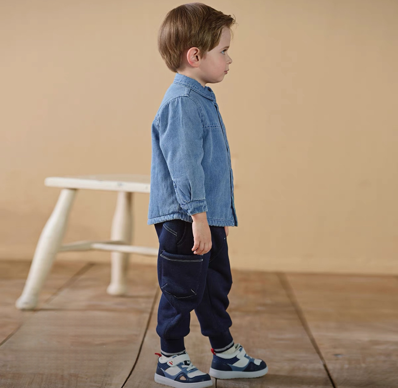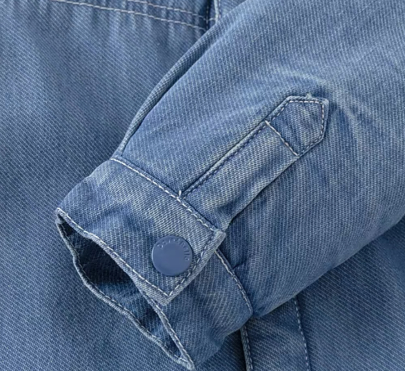 ポッケ部分のカギのデザインがおしゃれなデニムシャツです。