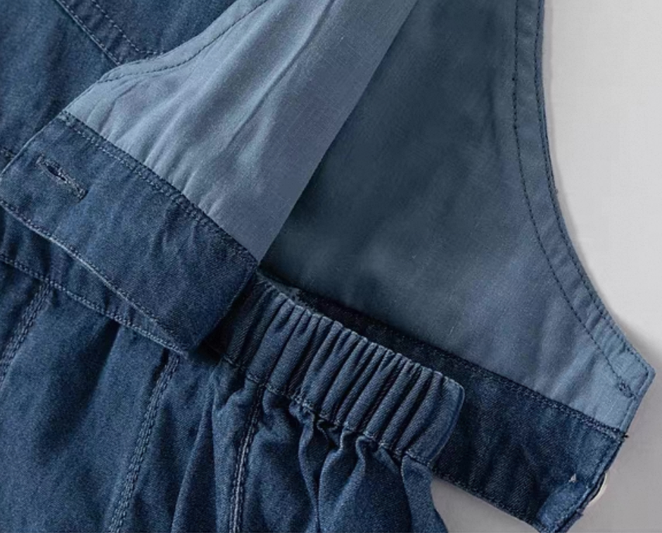 カジュアルながらガーリーな雰囲気を楽しめるデニム素材のサロペットです。