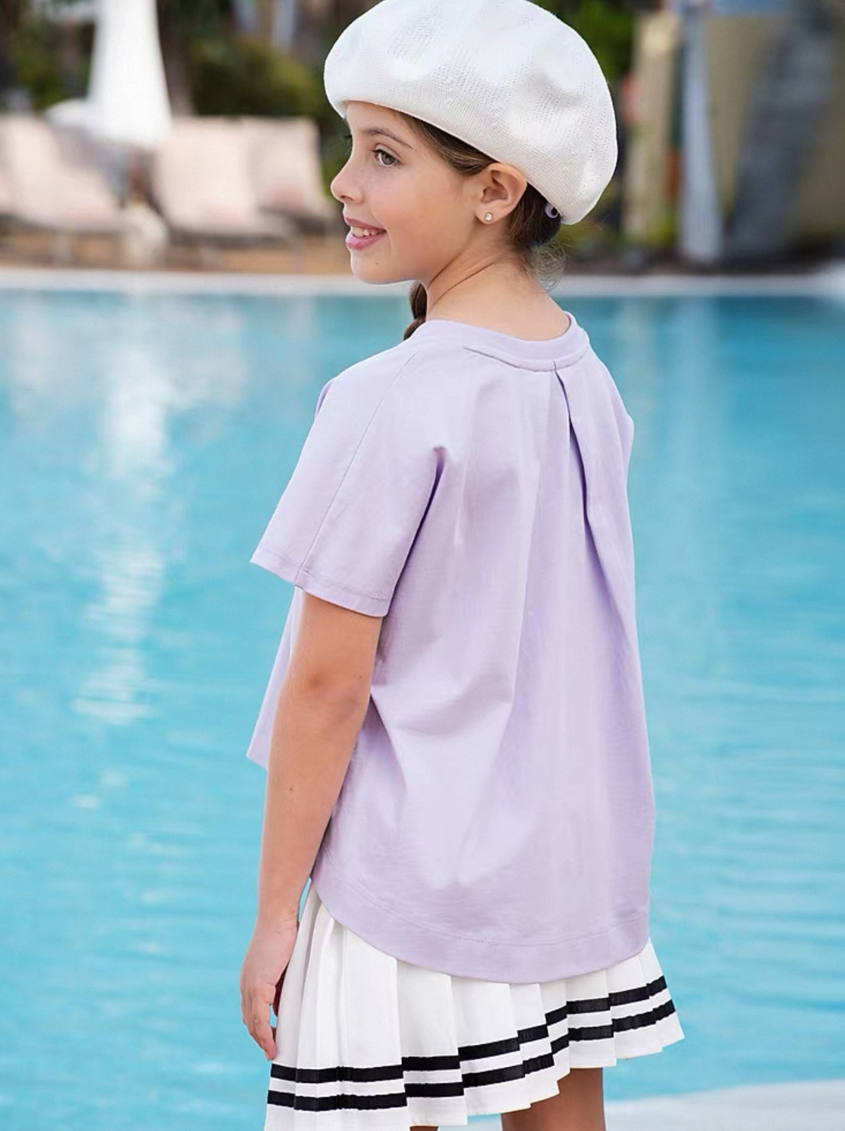 ラベンダーカラーが爽やかで優しい印象を与えるTシャツです。