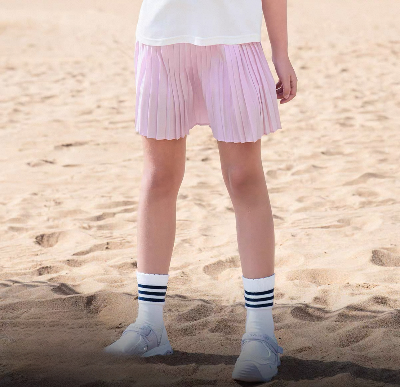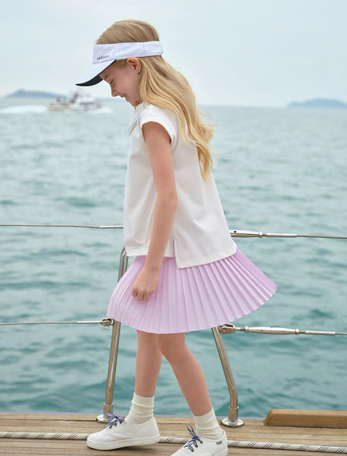 軽やかなプリーツが広がる、ガーリーでスポーティな印象のスカートです。