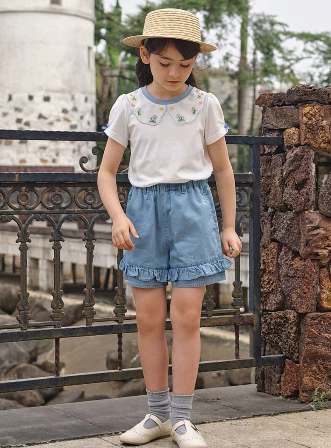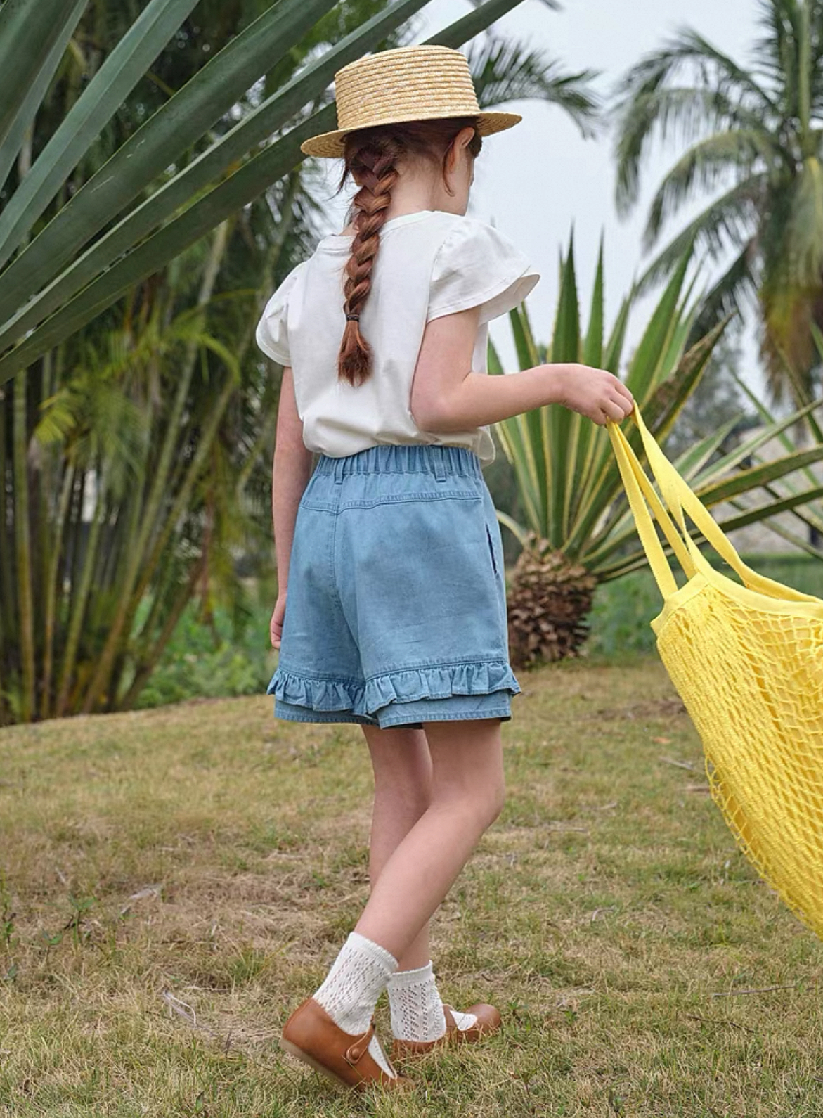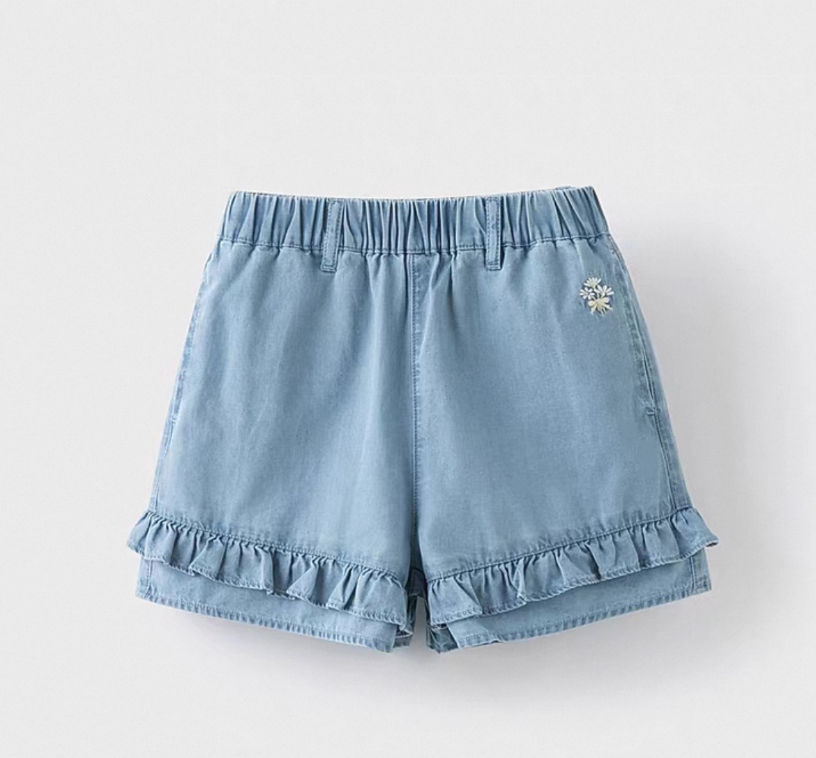 裾にさりげないフリルをあしらった、ガーリーなショートパンツです。