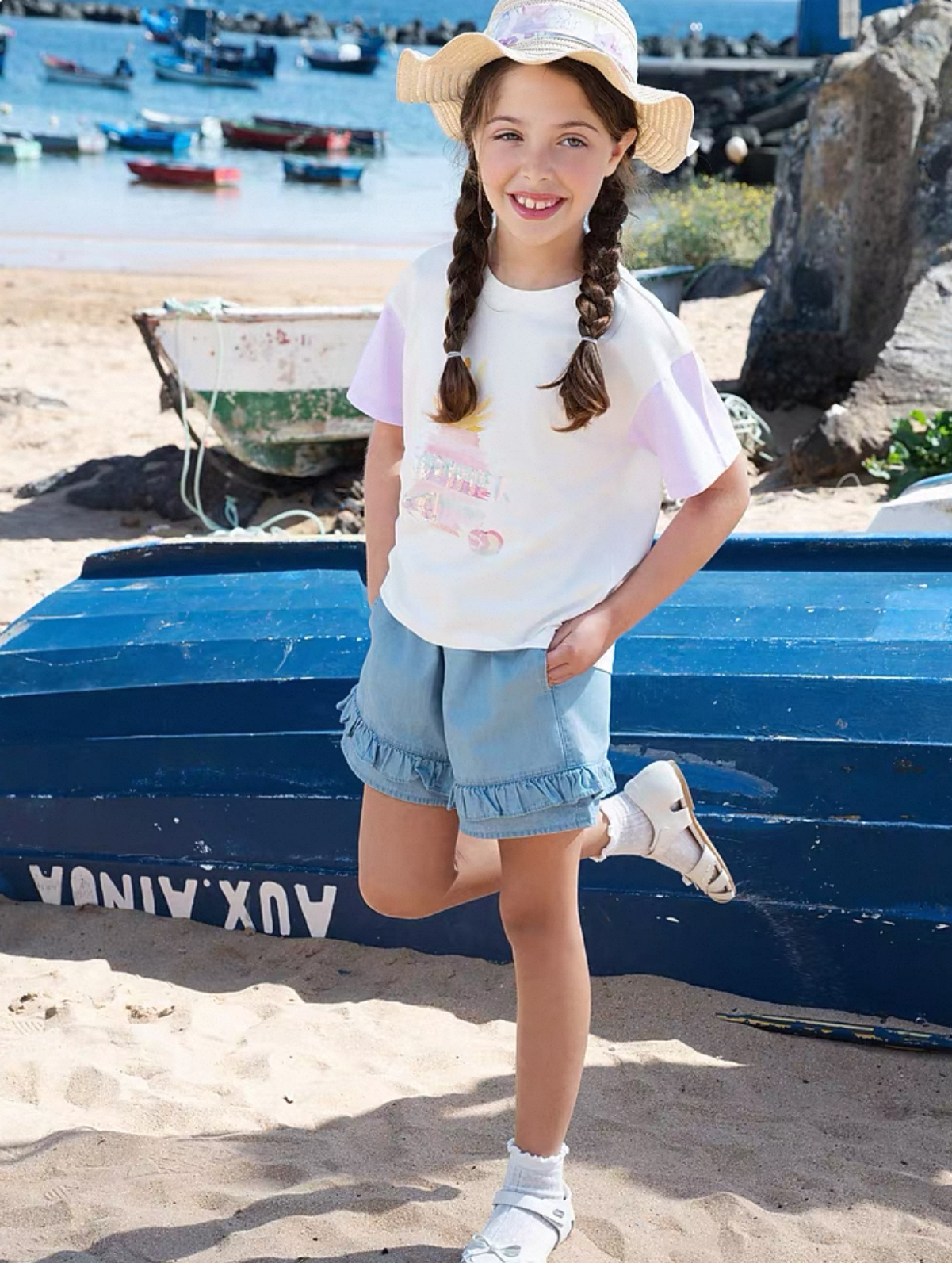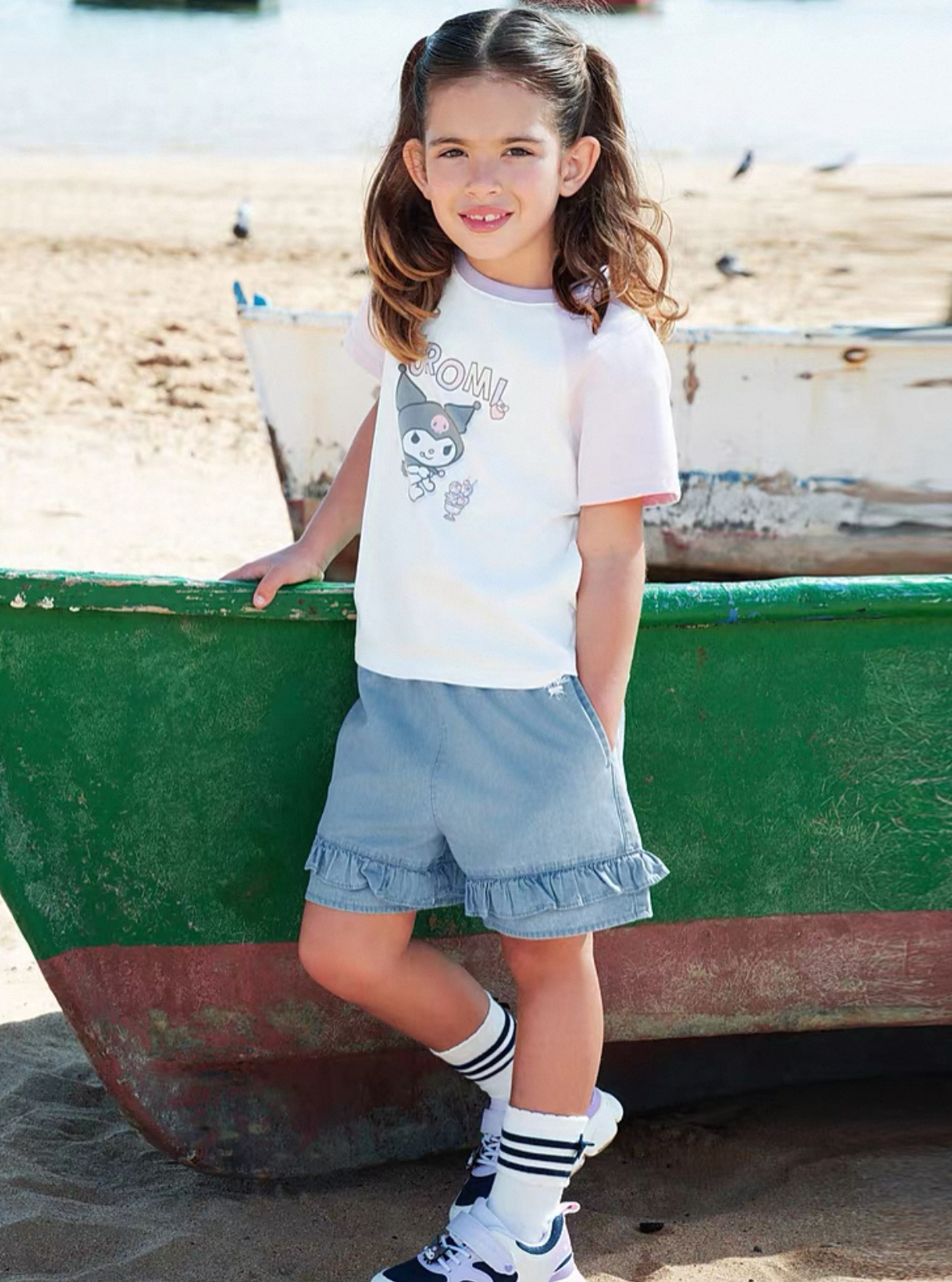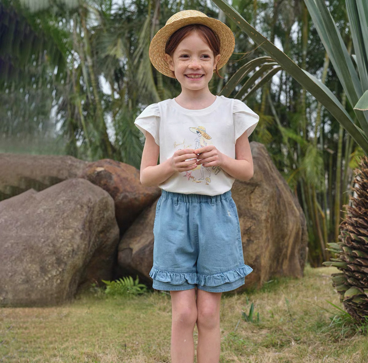 裾にさりげないフリルをあしらった、ガーリーなショートパンツです。