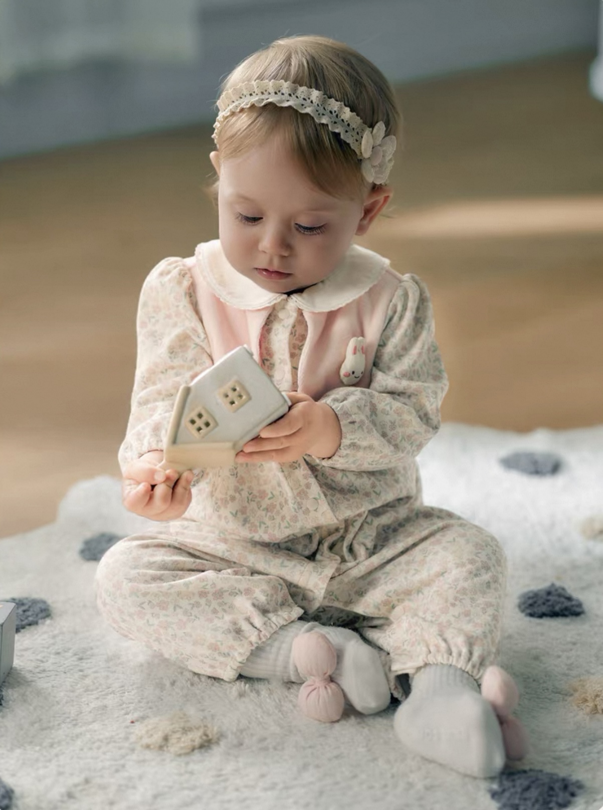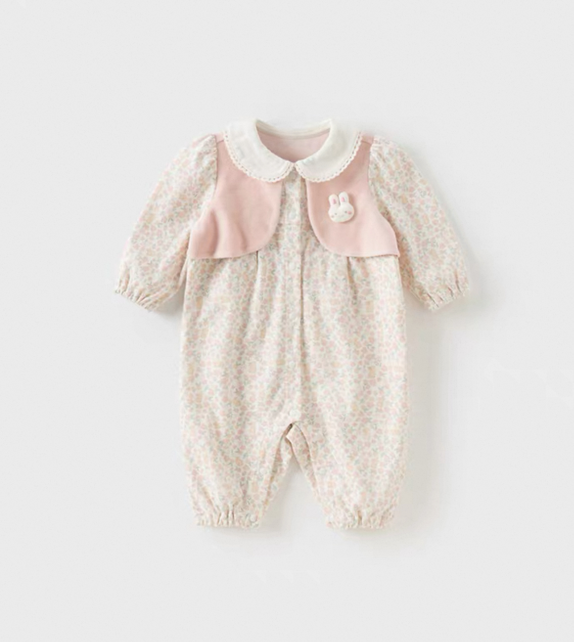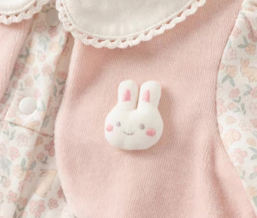 さらに、うさぎのモチーフを胸に添えて赤ちゃんらしいキュートなアクセントをプラスしています。