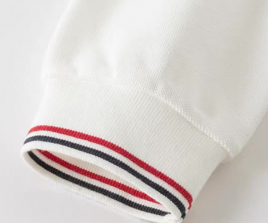 袖口と前立て部分には赤・ネイビーのライン入りで、トリコロールカラーがアクセントに!
