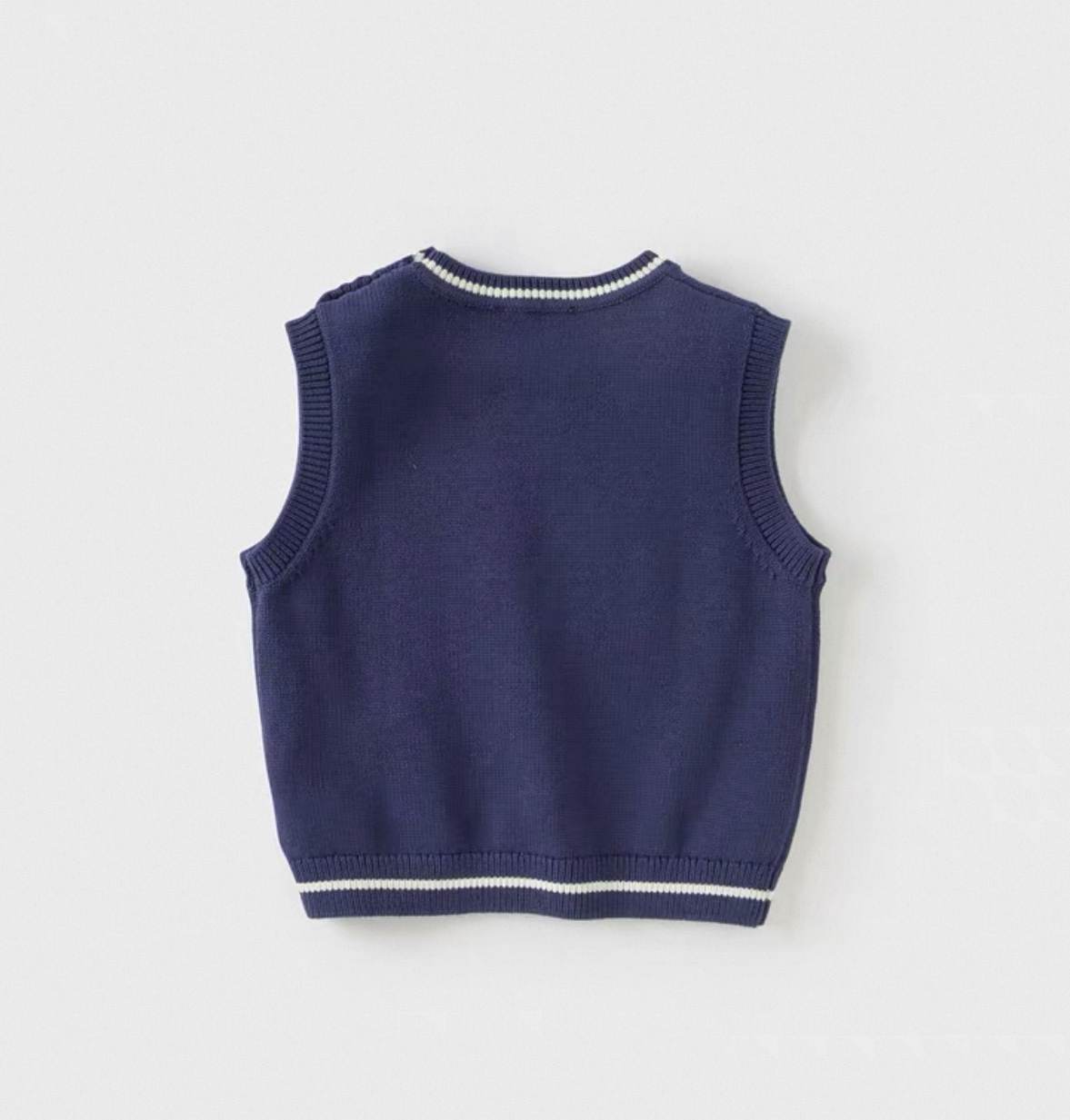 フロントにレーシングカーの刺繍デザインをあしらった、元気いっぱいのニットベストです。