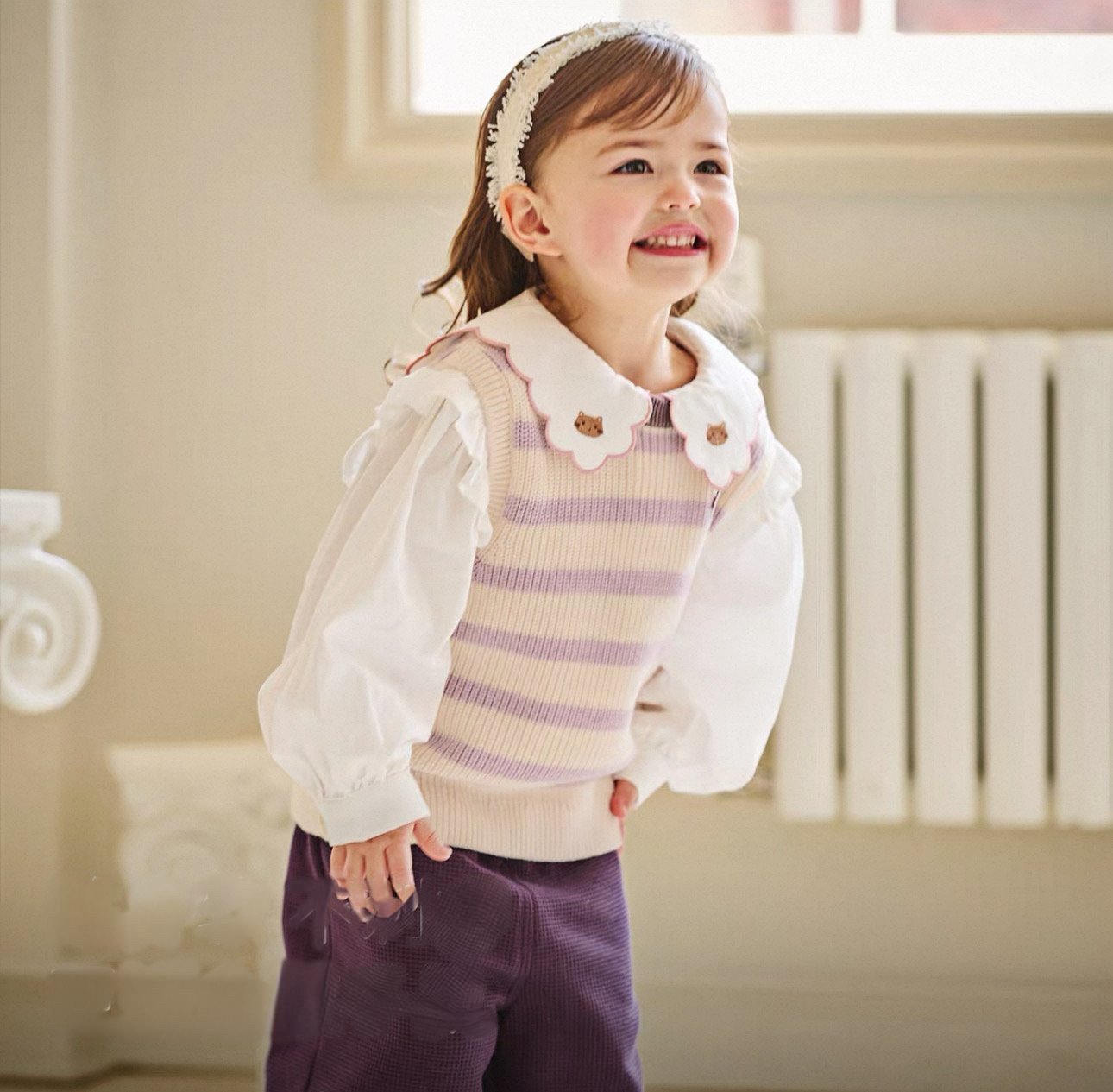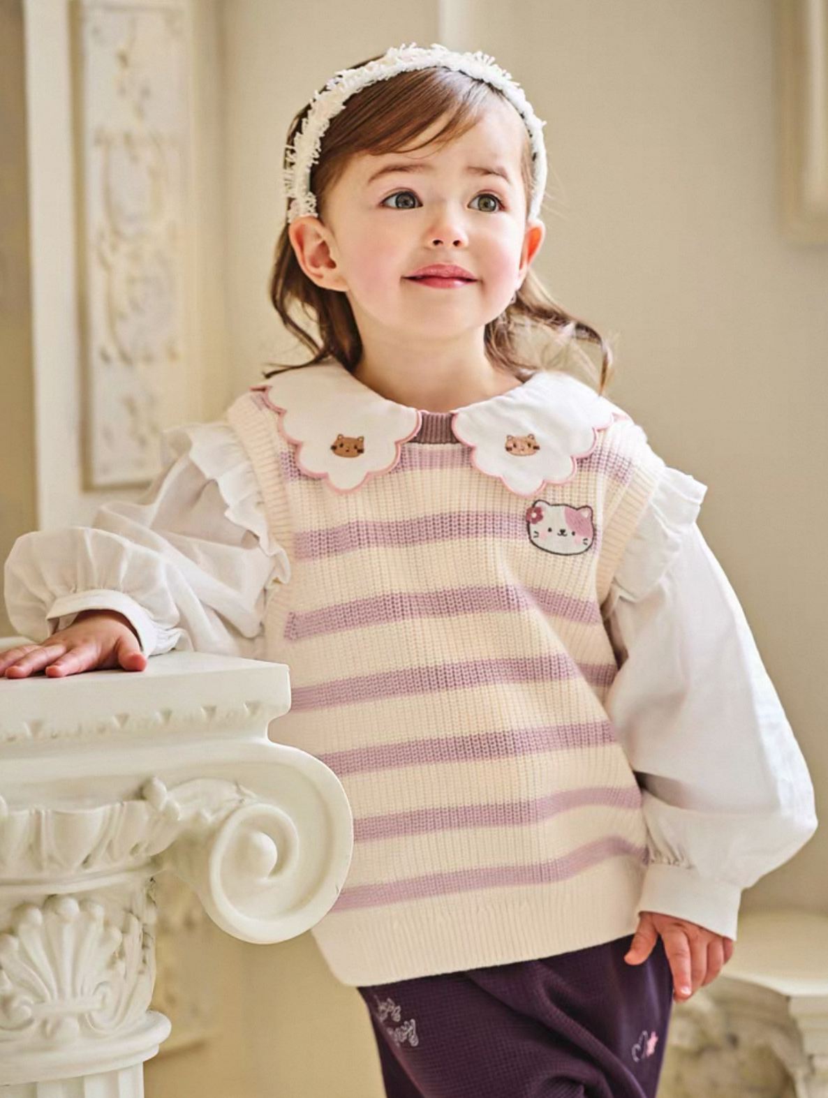 ねこちゃん刺繍ボーダーニットベスト DB3253264