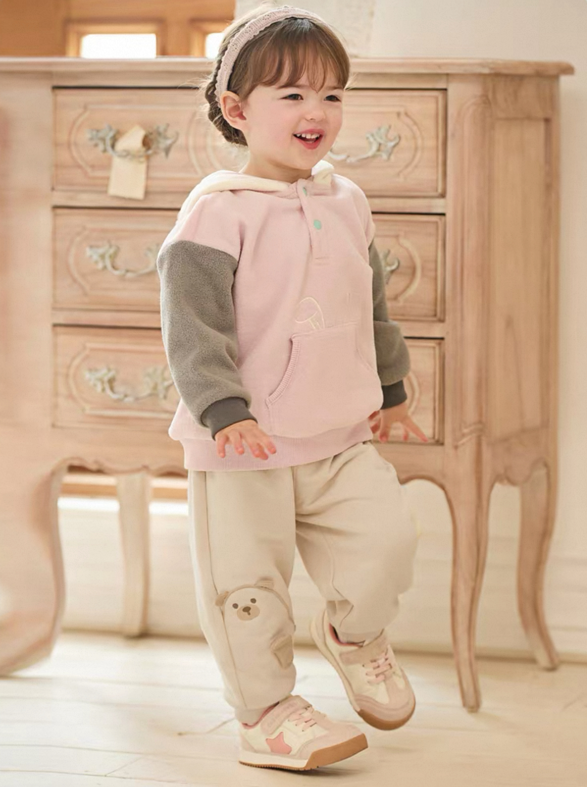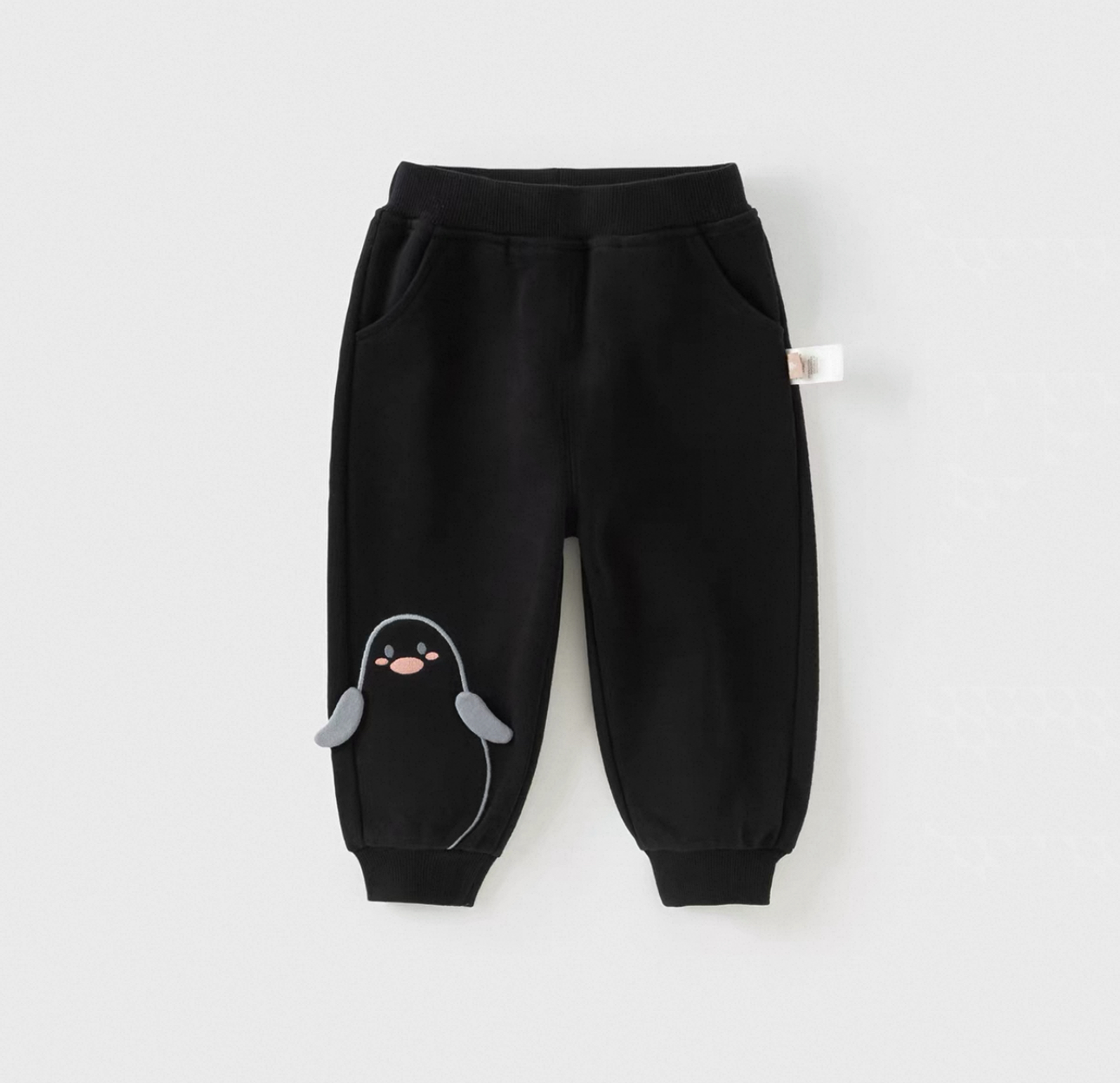ベージュは“くまさん”、ブラックは“ペンギンさん”の刺繍&アップリケで、お子さまの毎日コーデに遊び心をプラスします♪