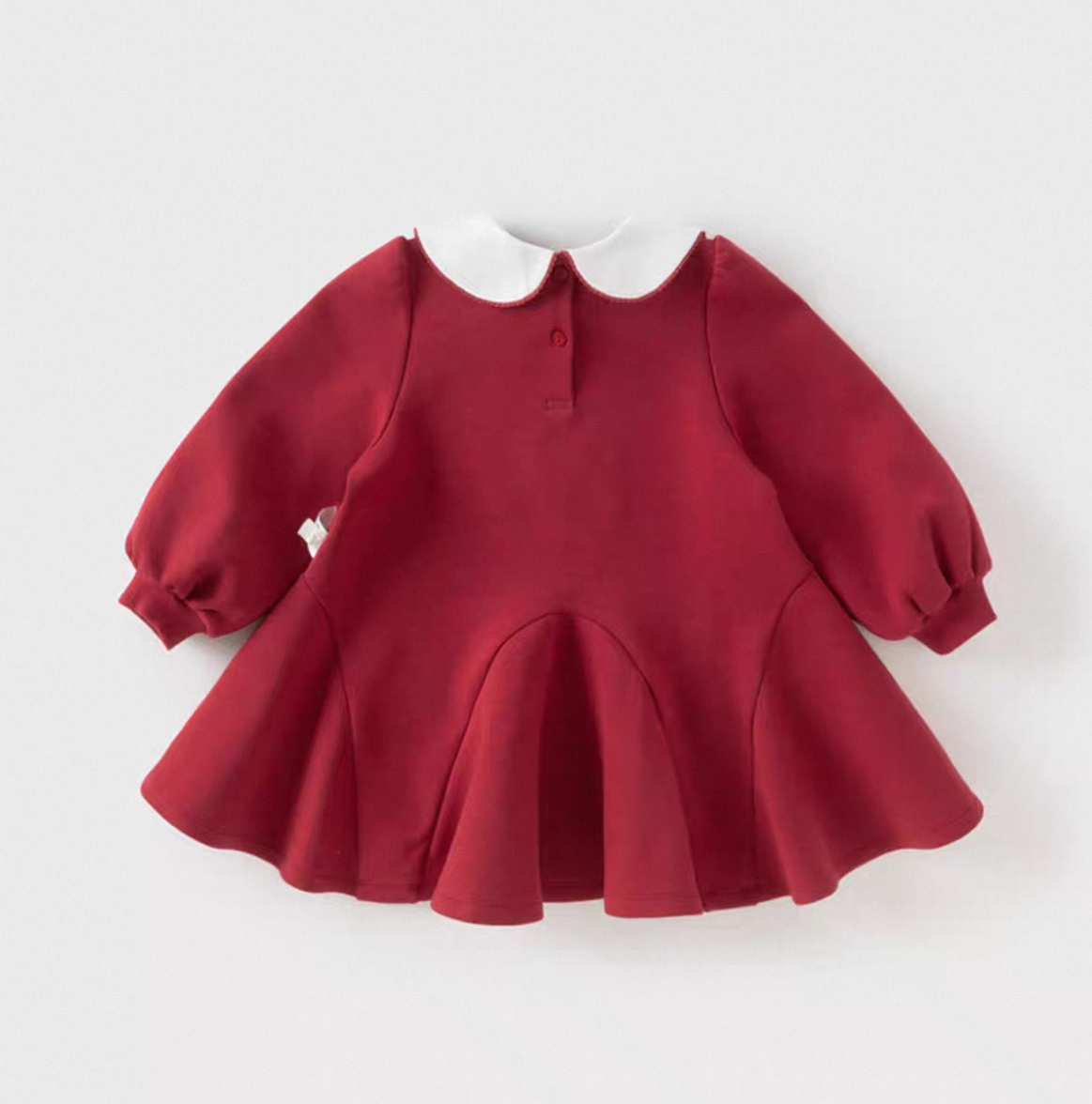 ふんわりとしたシルエットと、丸い襟が愛らしい印象のワンピースです。