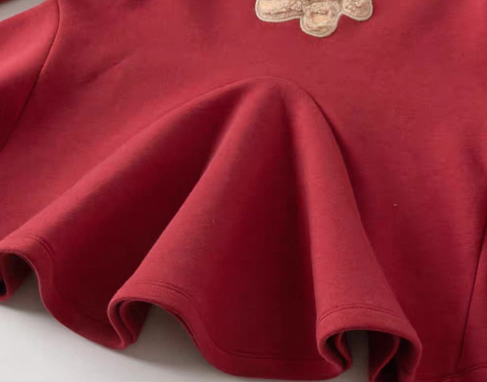 胸元にはボア素材のくまさんモチーフがあしらわれ、