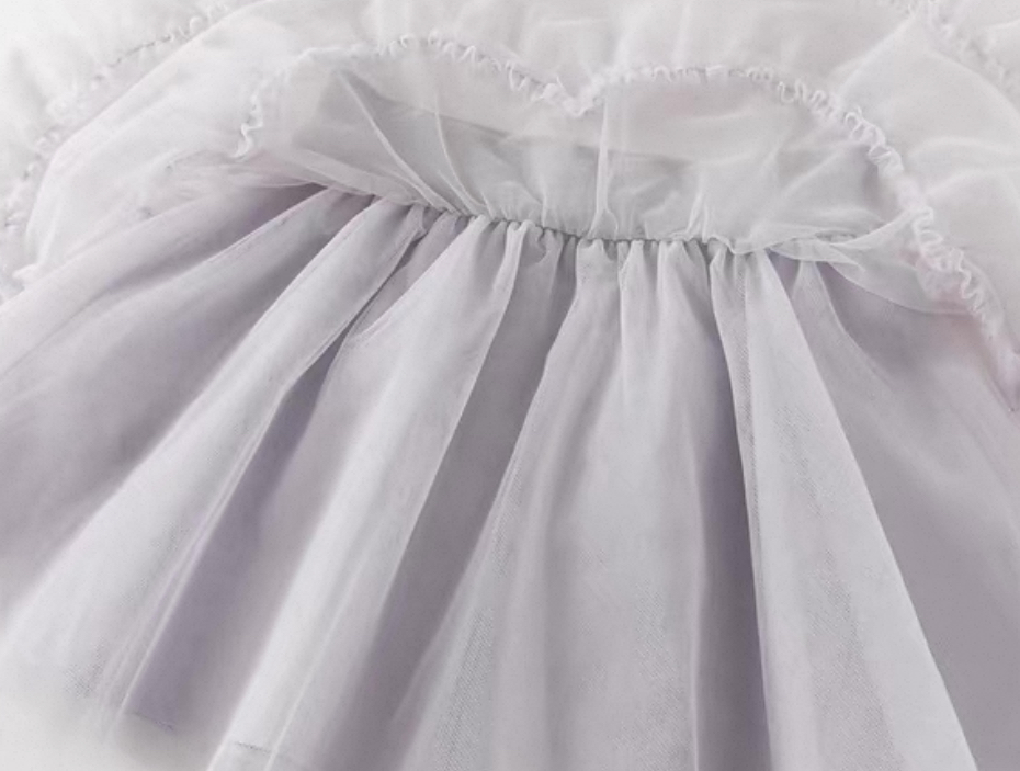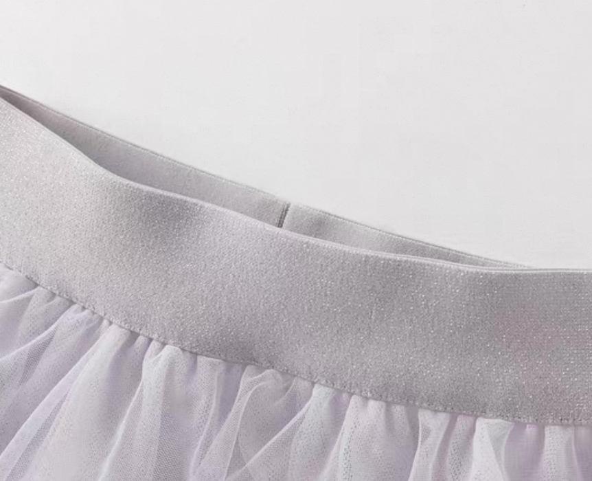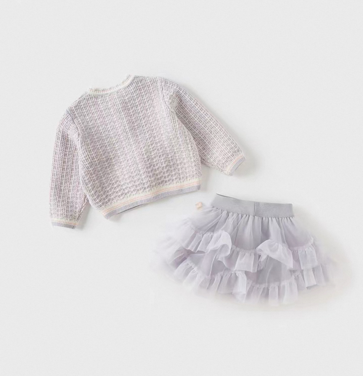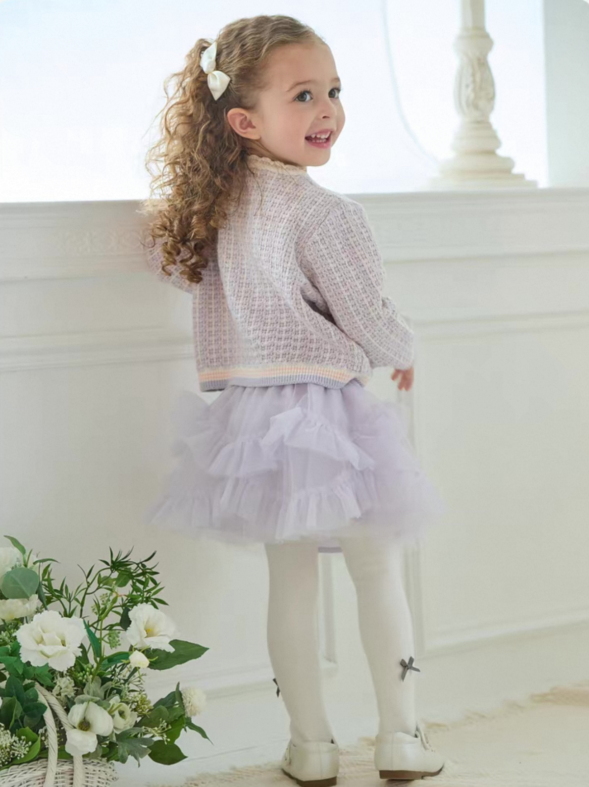 ふんわりチュールが重なったボリュームスカートを合わせたセットアップです。