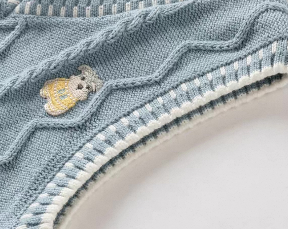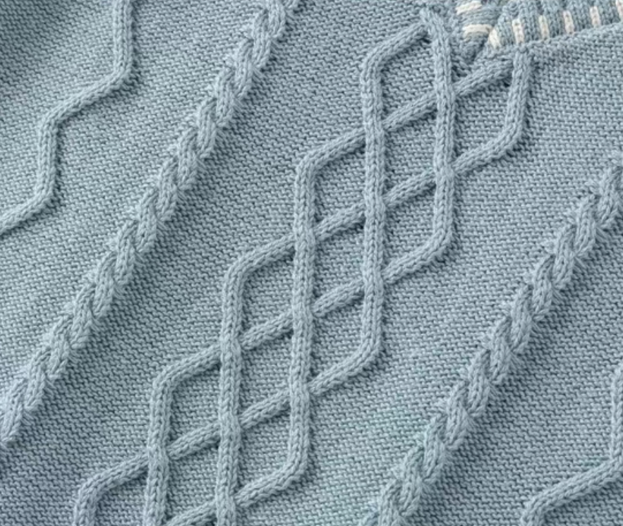 フロントには立体感のあるケーブル編みを施し、