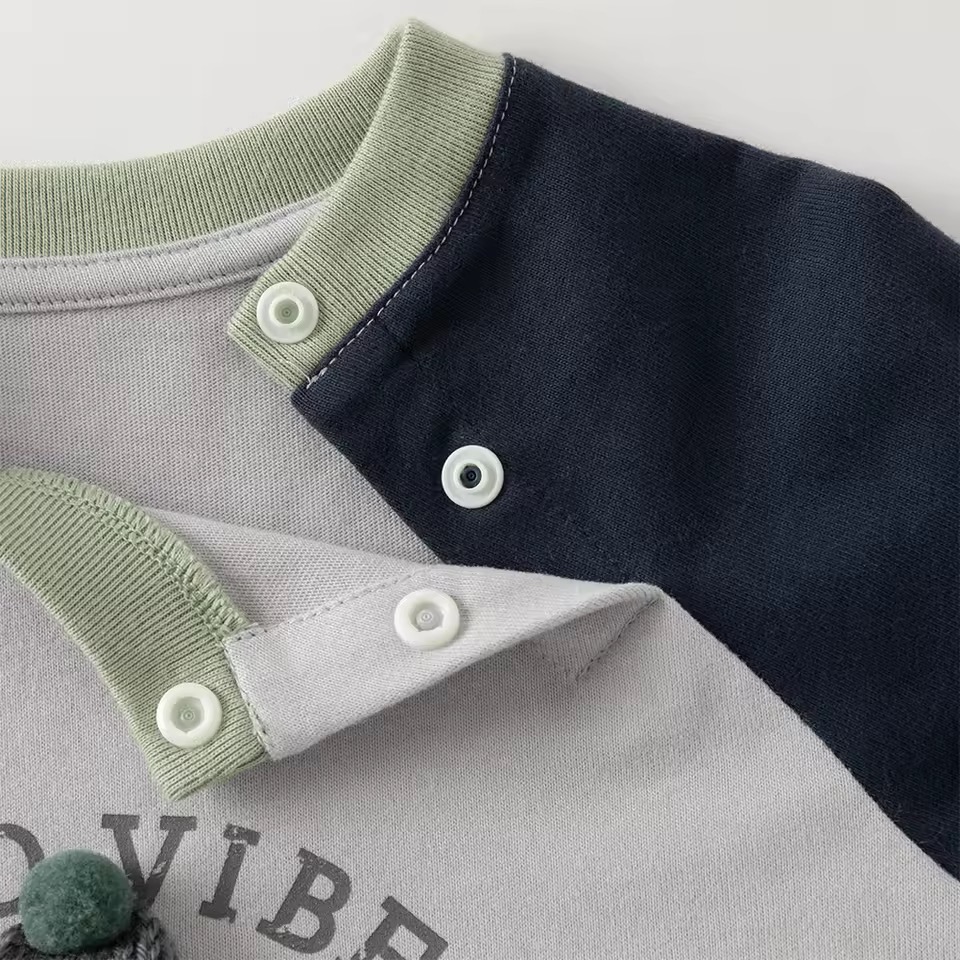 90サイズまでは首元にスナップボタン付きで