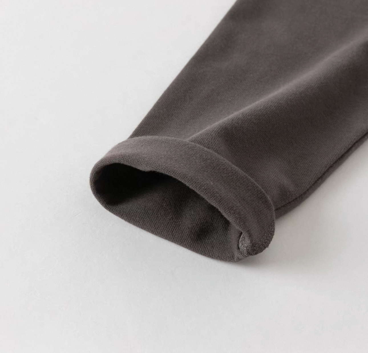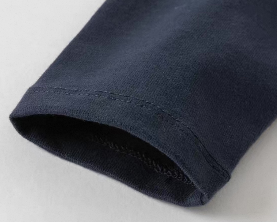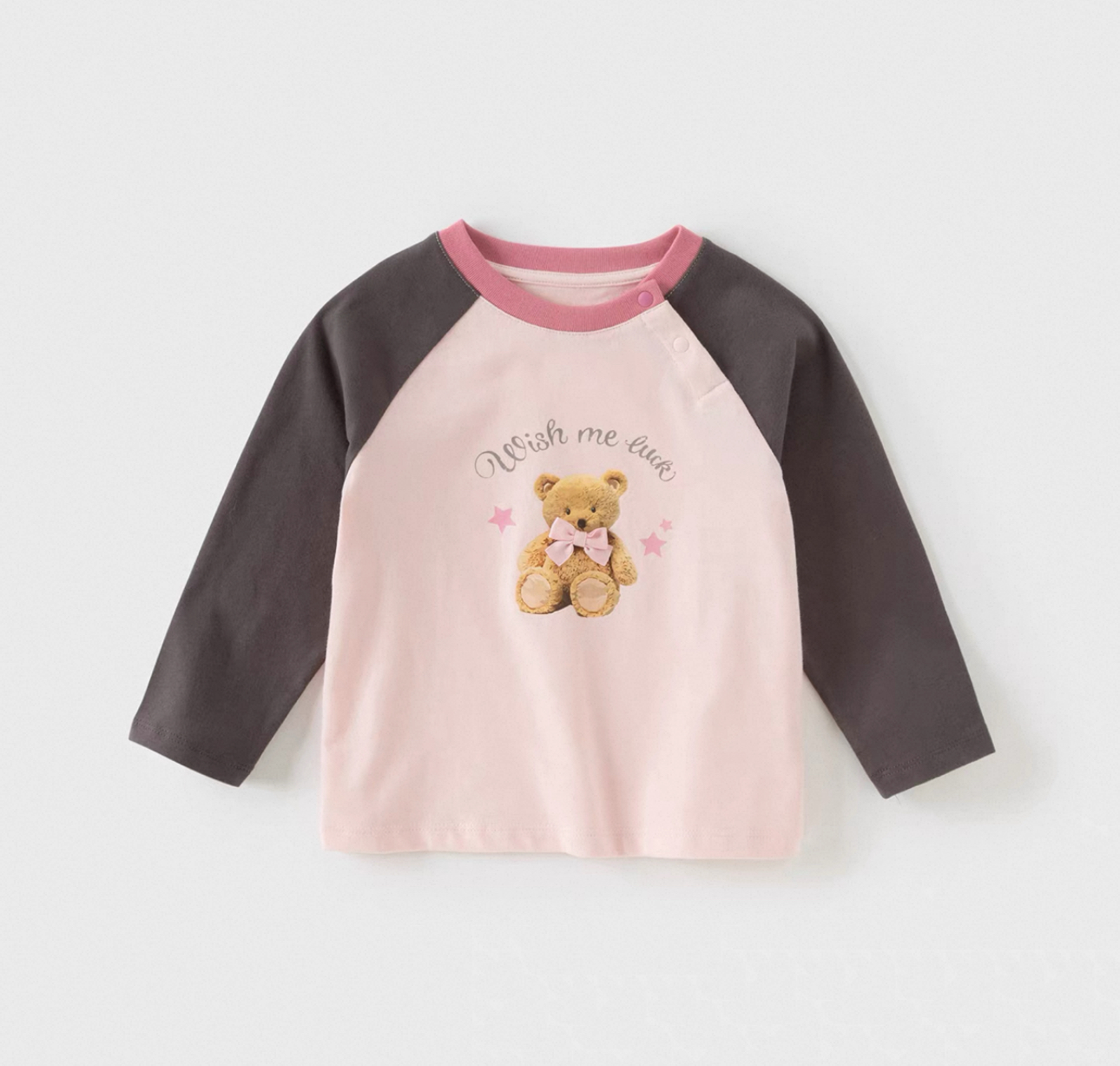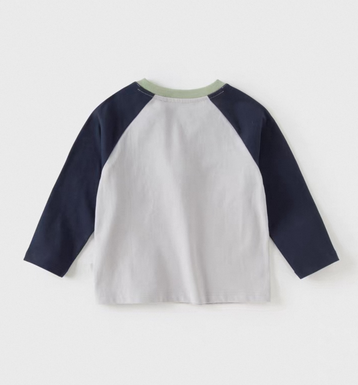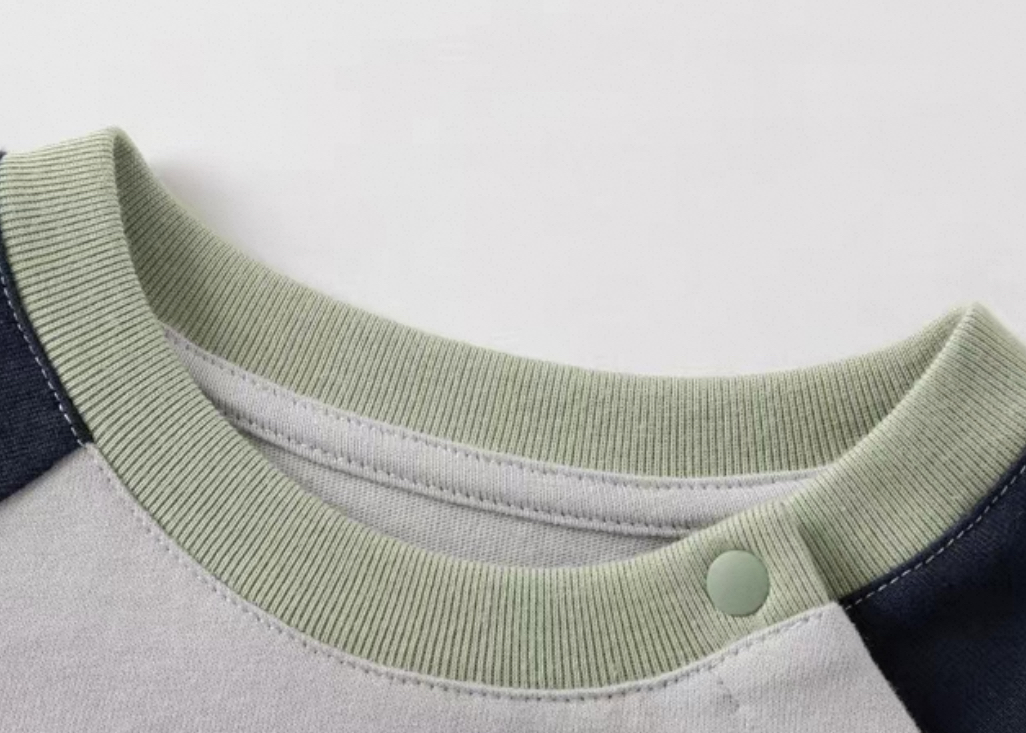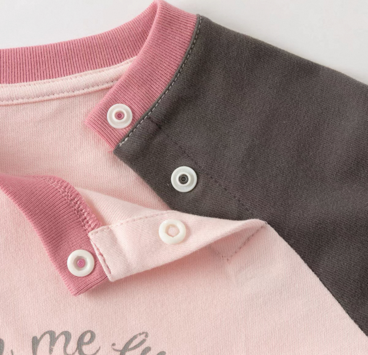 ラグランスリーブで動きやすく、首元にはスナップボタン付きでお着替えもスムーズです。
