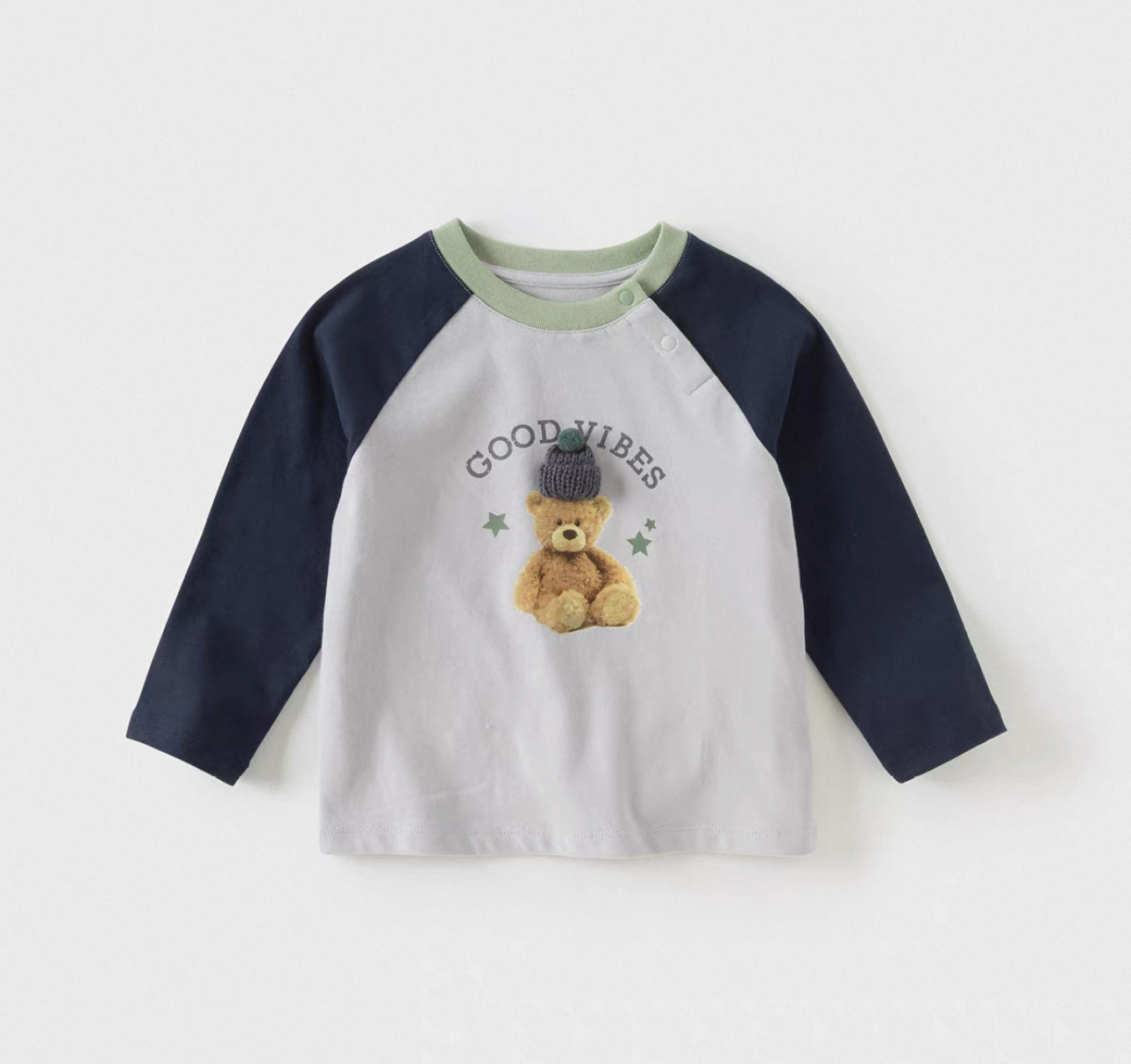 前面のくまさん刺繍がポイントの、やさしい雰囲気のロンTです。
