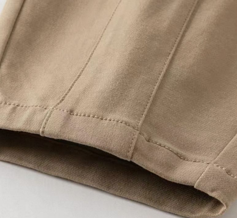 フロントに入った縦ラインのタックが脚をすっきり長く見せ、