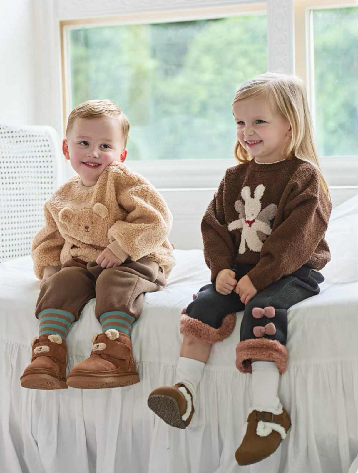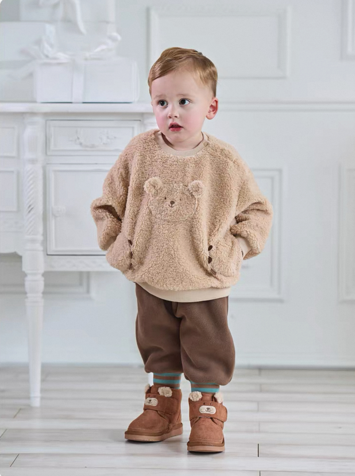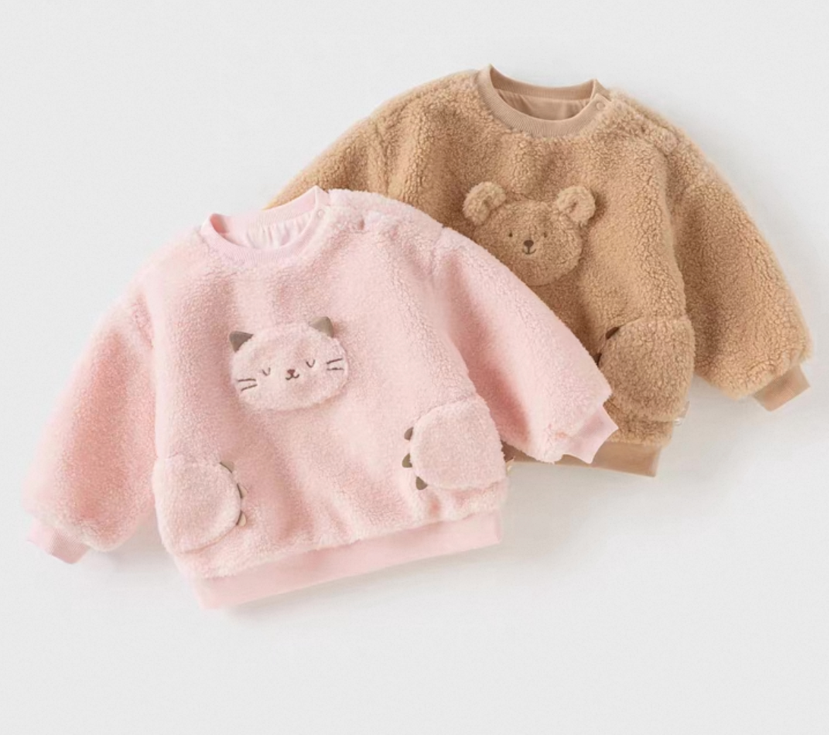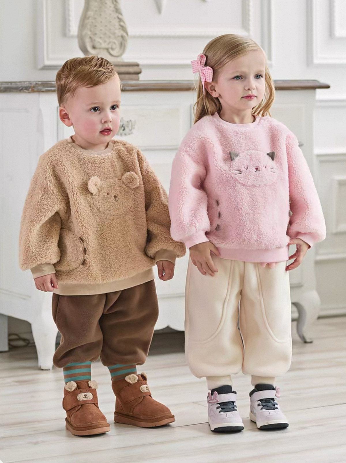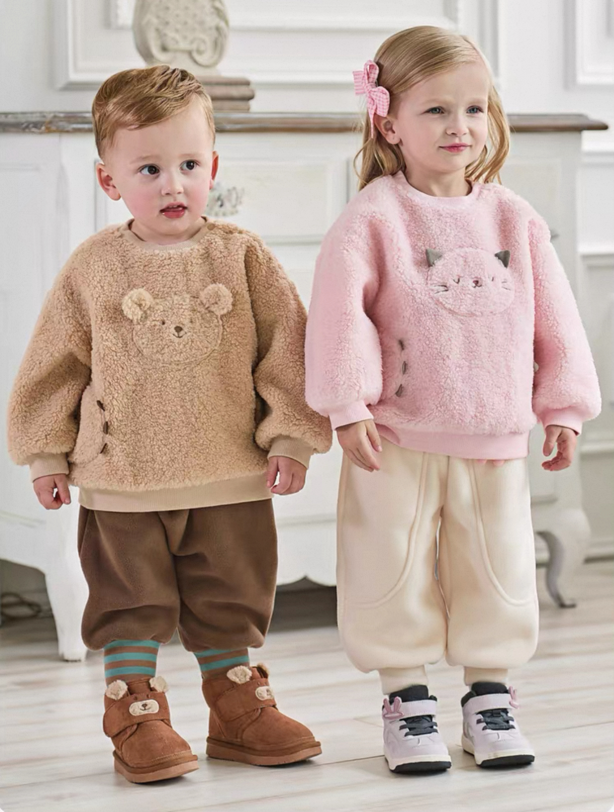 ふんわりボア素材に、立体的なアニマルデザインがポイントのキッズトップスです。