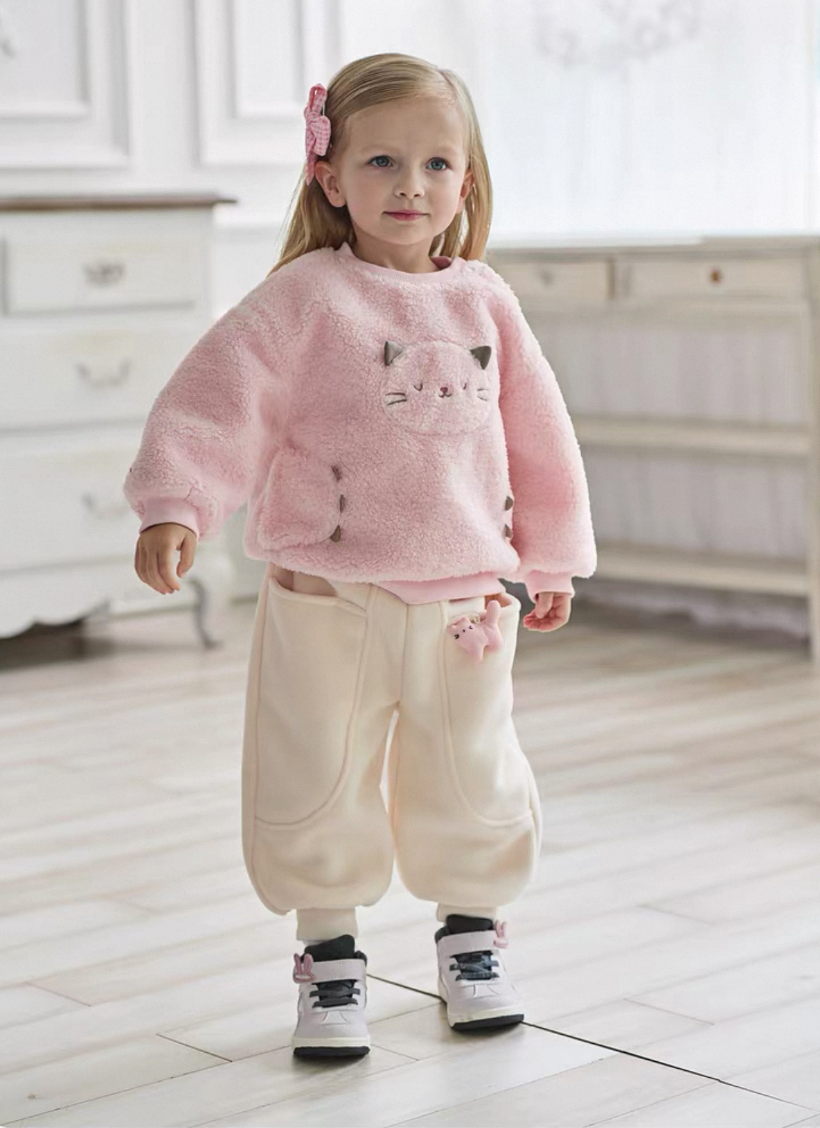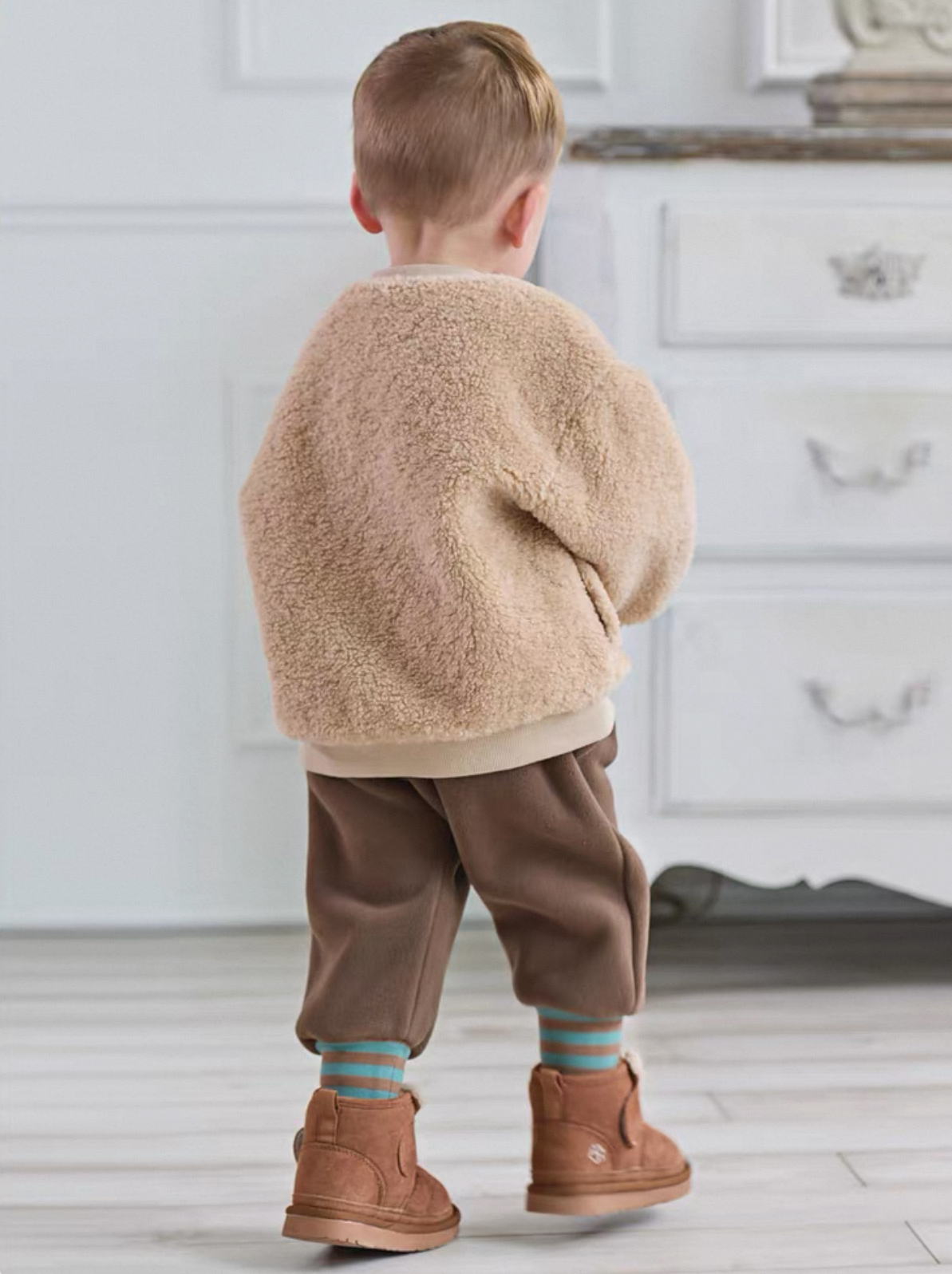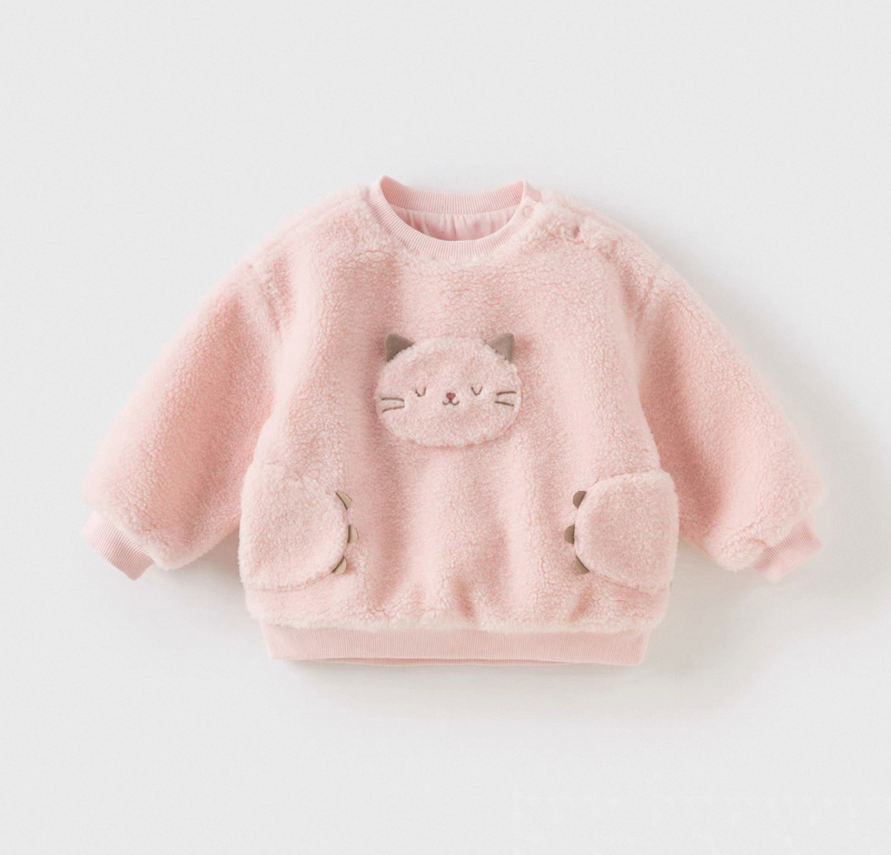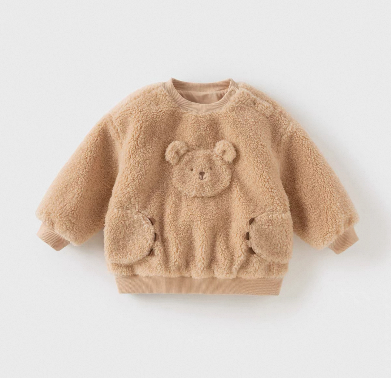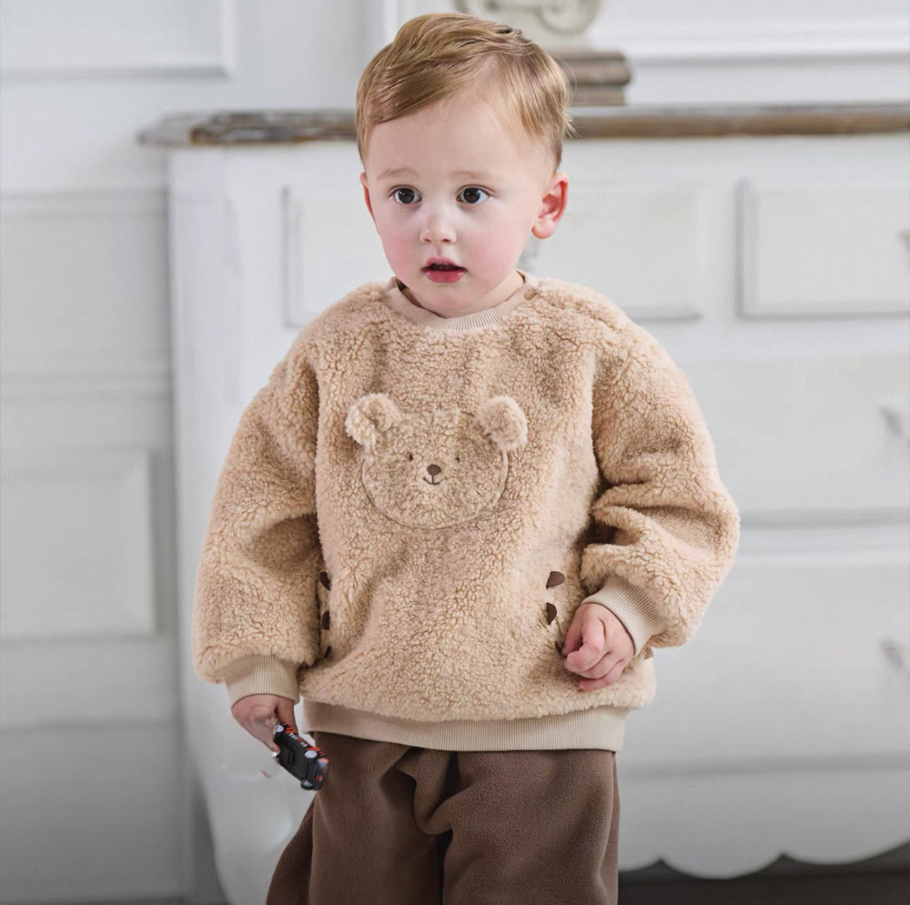 ふんわりボア素材に、立体的なアニマルデザインがポイントのキッズトップスです。
