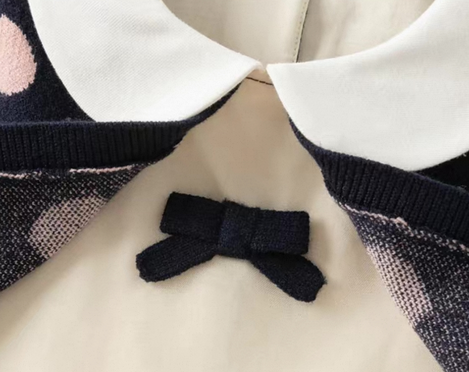白い丸襟が上品なアクセントになり、フォーマル感とキュートさを両立しています。