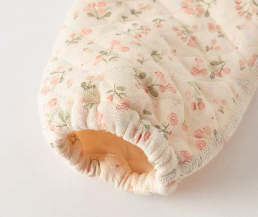 淡いクリームカラーをベースに柔らかいピンクやグリーンの花柄が映え、やさしい雰囲気の一枚です。