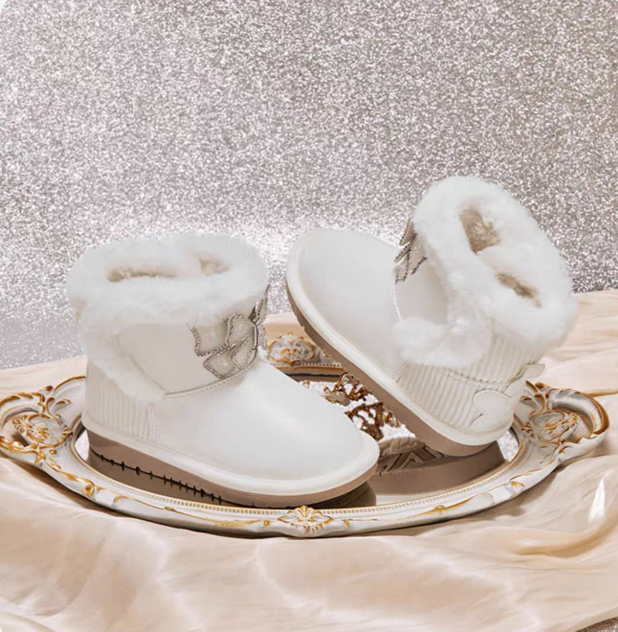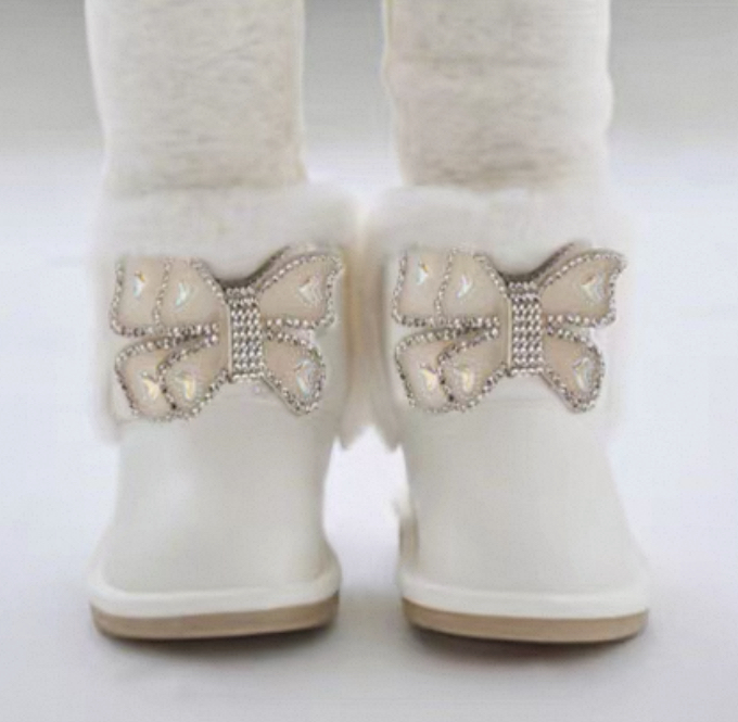 ホワイトキラキラリボン付きショートブーツ DB4254752