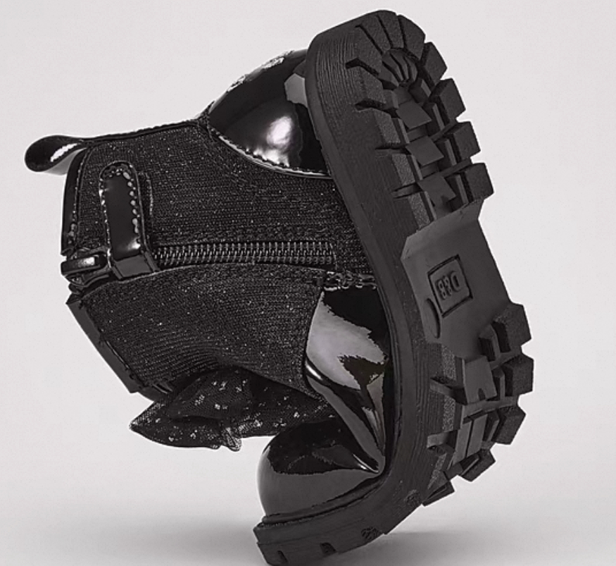 艶のあるエナメル素材×キラキラのラメサイドパネルで、