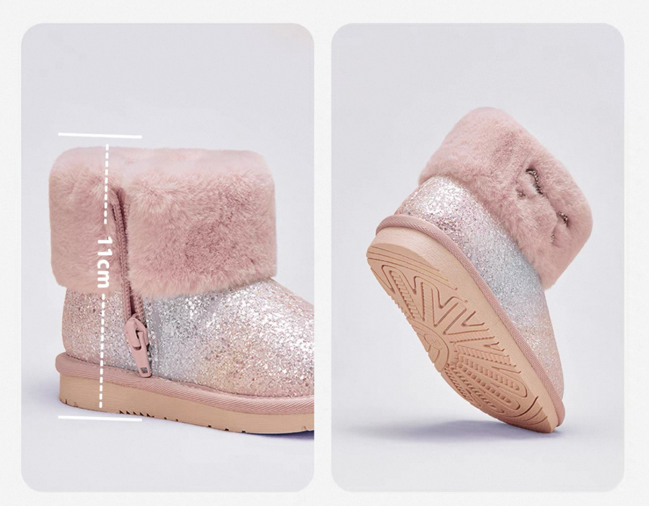 履き口はボリュームのあるフェイクファーでしっかり保温!