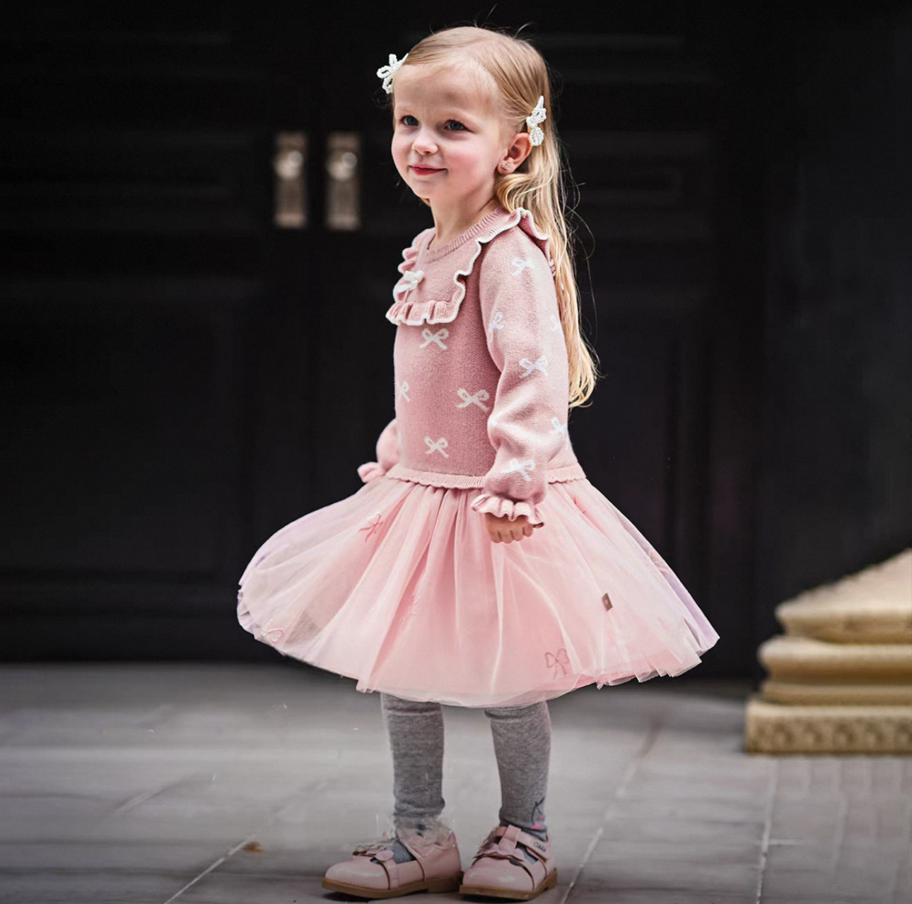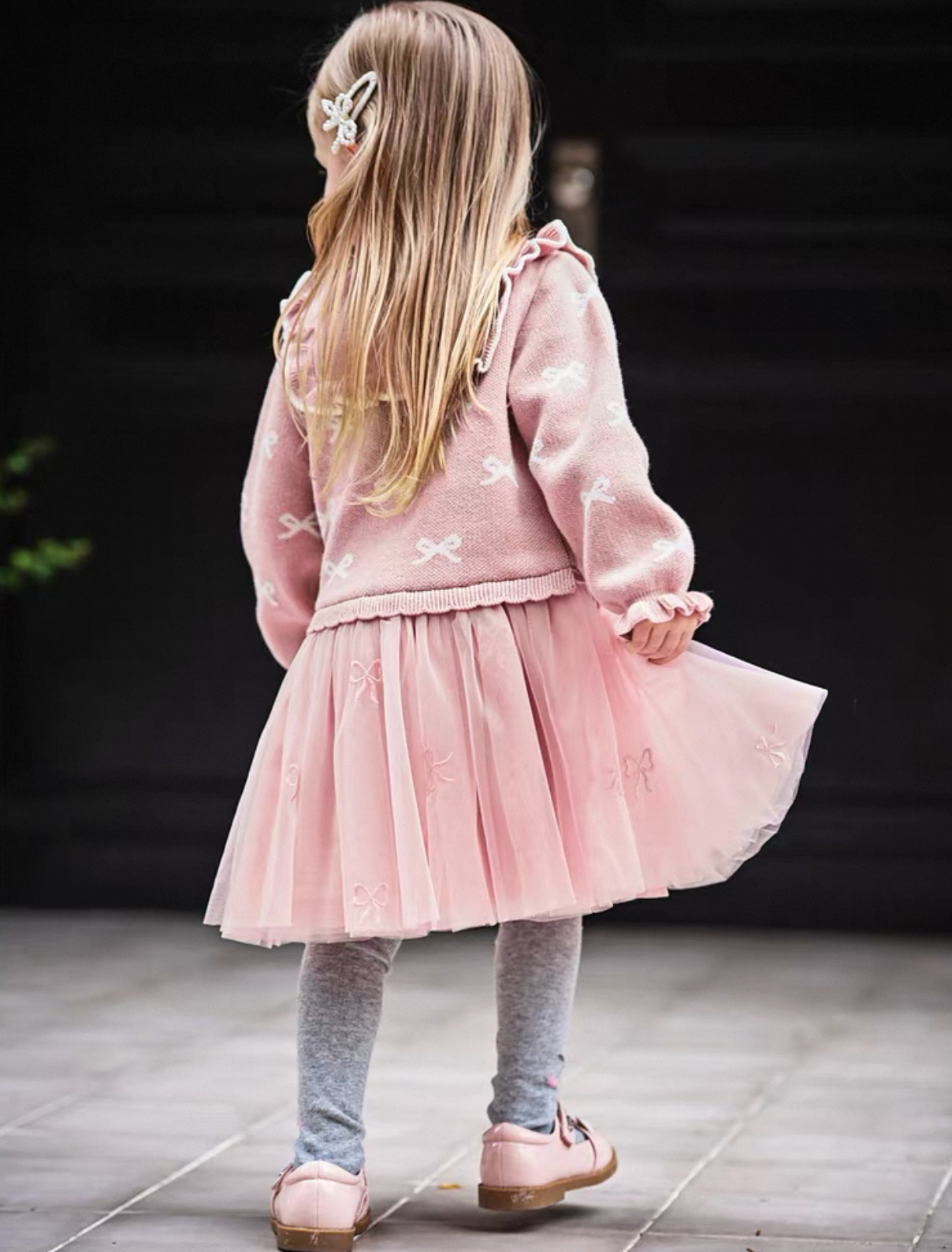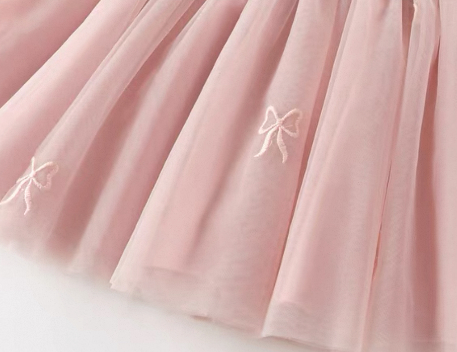 チュールにも小さなリボン刺繍が施されており、動くたびに揺れる愛らしいシルエットが魅力です。