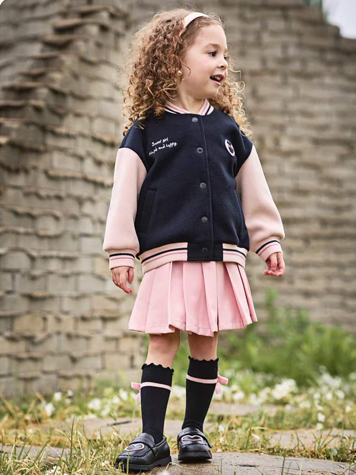 ネイビー×ピンクの配色が目を惹く、ガーリースポーティなブルゾンです。