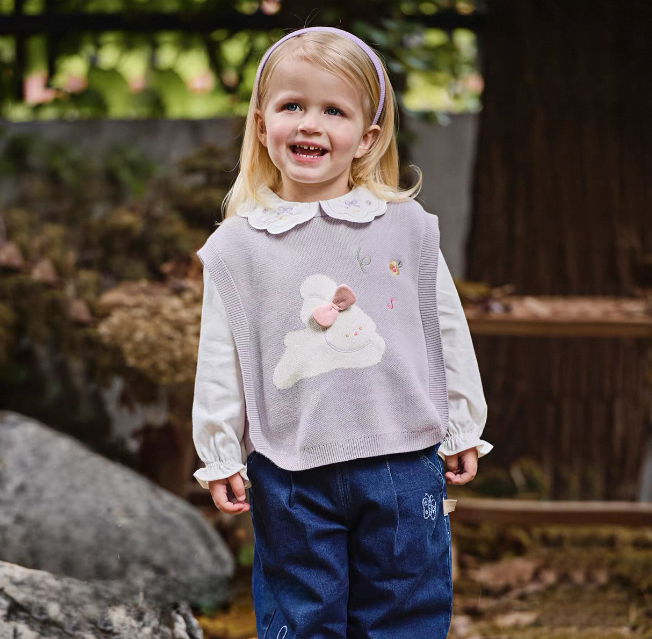 柔らかなニット素材で仕立てた、キュートなモチーフ入りベビーベストです。