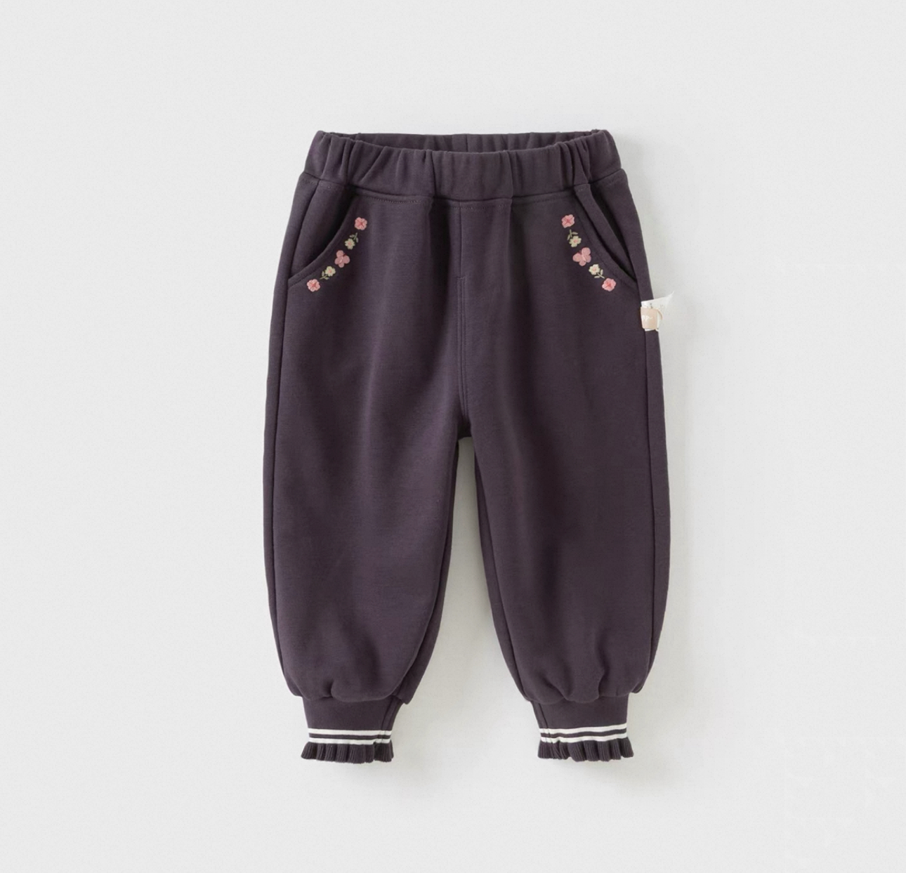 動きやすさと可愛らしさを兼ね備えた、柔らかスウェット素材のパンツです。