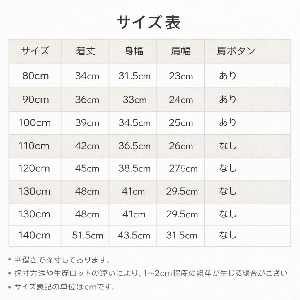 ※採寸方法や生産ロットの違いにより、1〜2cm程度の誤差が生じる場合がございます。