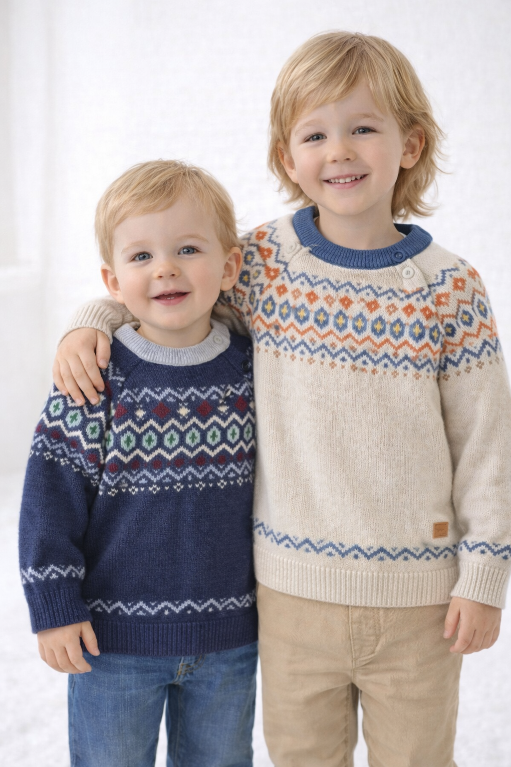 冬の定番・フェアアイル柄を取り入れた、可愛さと温かさを兼ね備えたキッズニットトップスです。