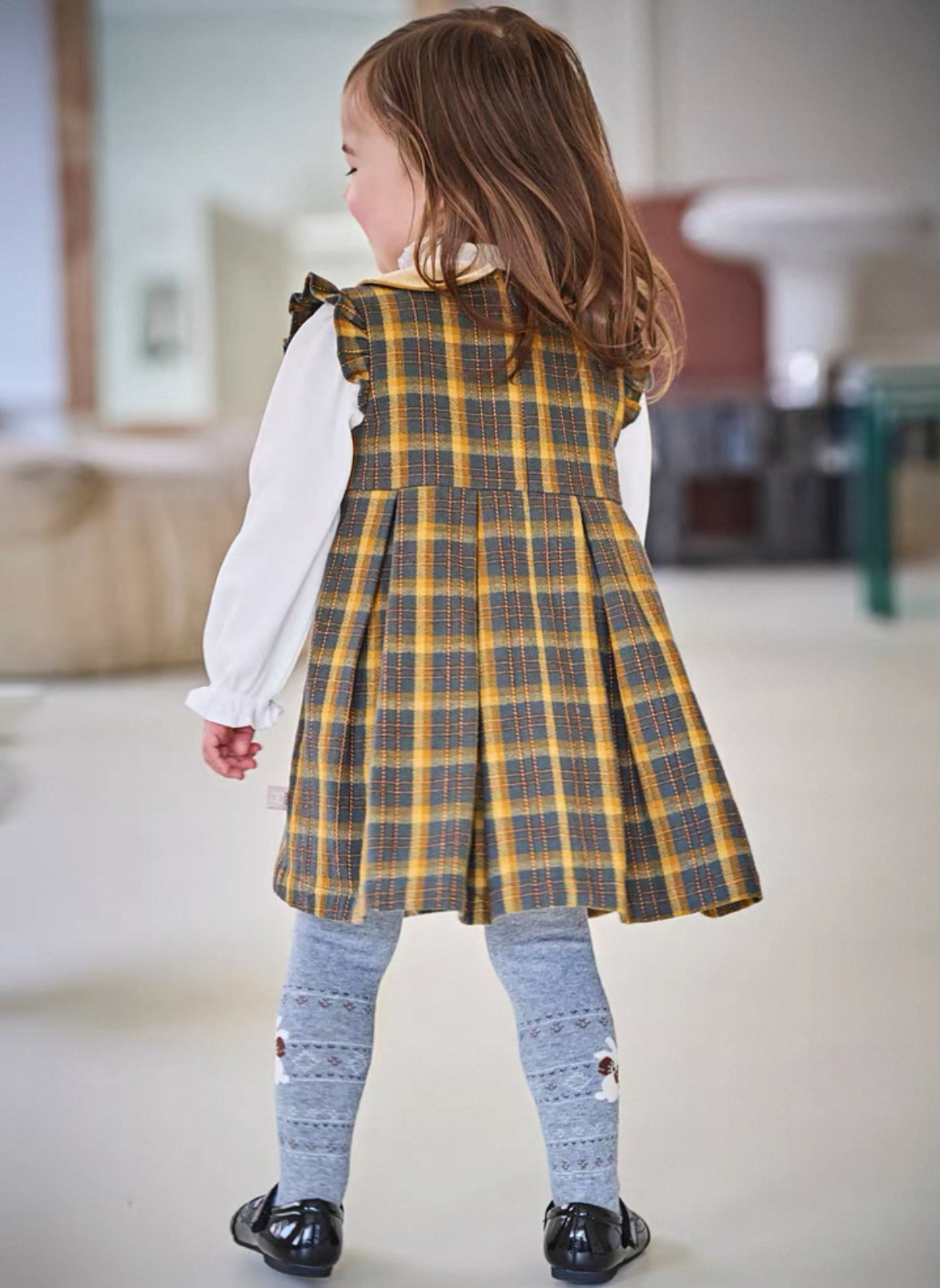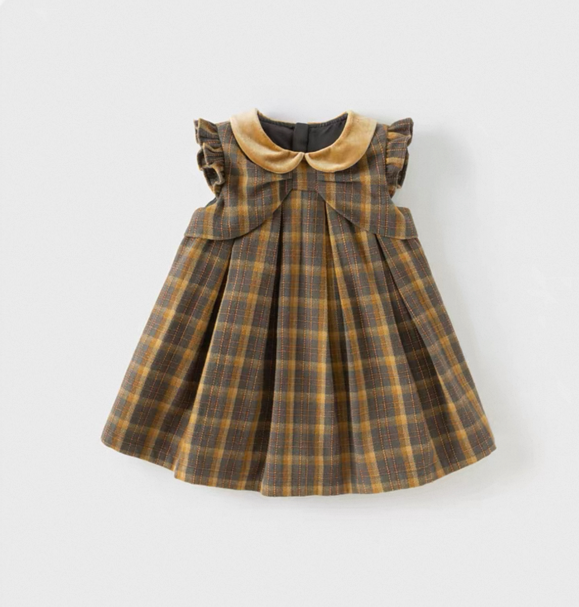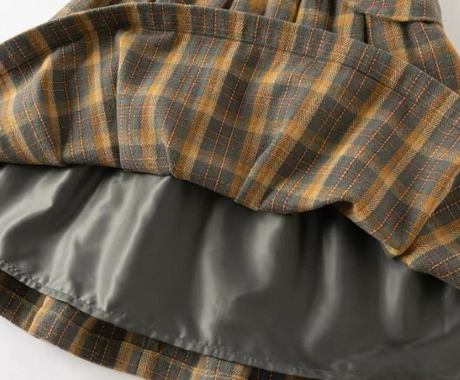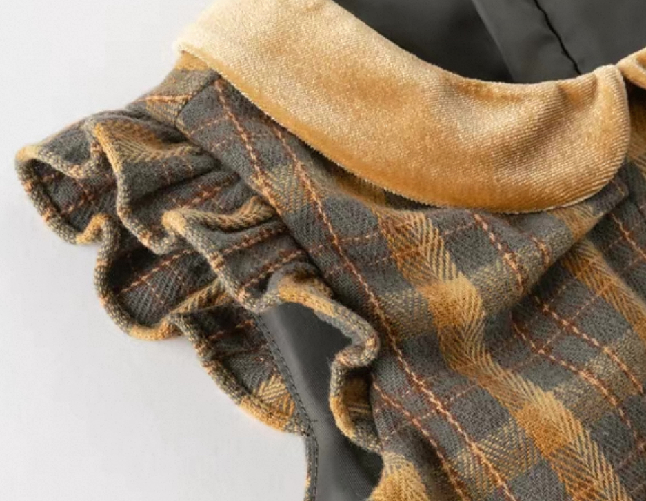落ち着いたブラウン×イエロー系のチェック柄が季節感たっぷりのワンピースです。