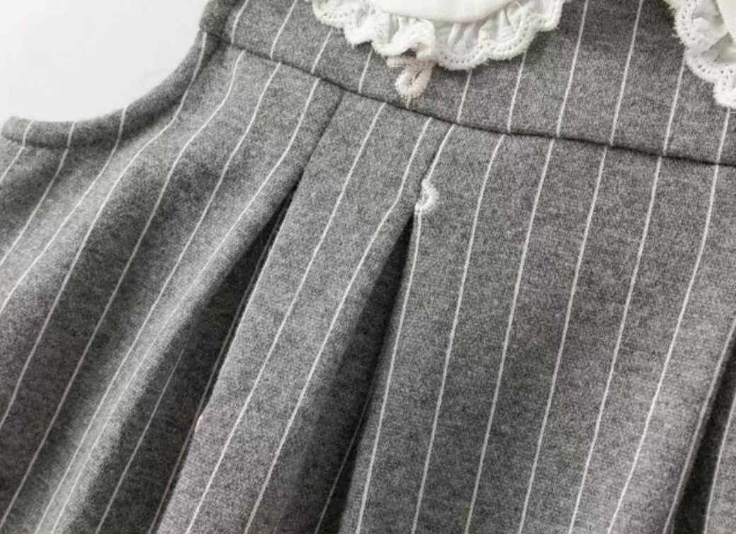 白い丸襟にはさりげないフリルがあしらわれ、着るだけで清楚で可愛らしい雰囲気に仕上がります。