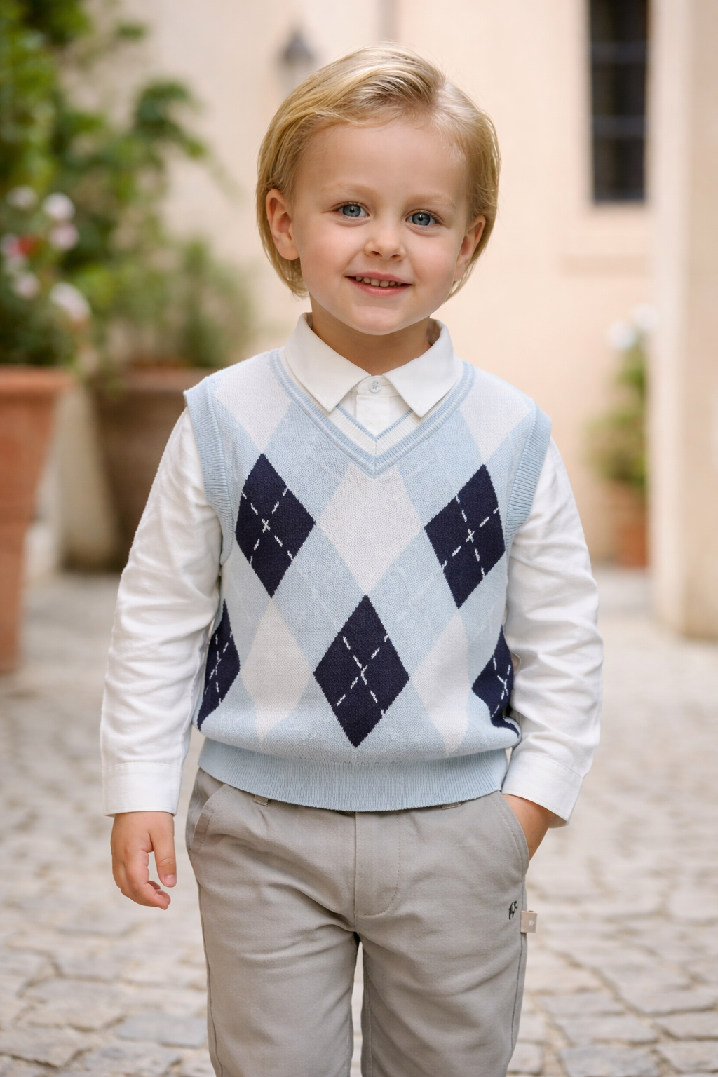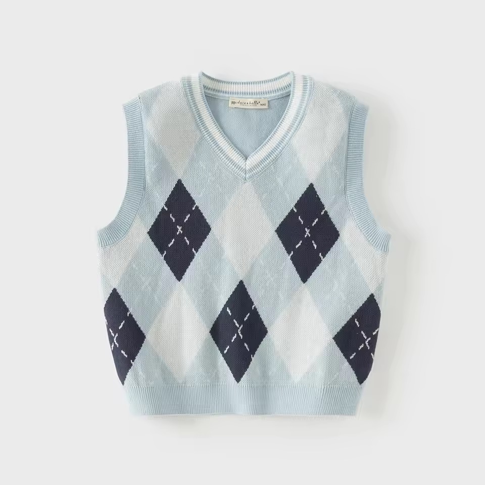 上品なアーガイル柄をあしらったニットベスト。