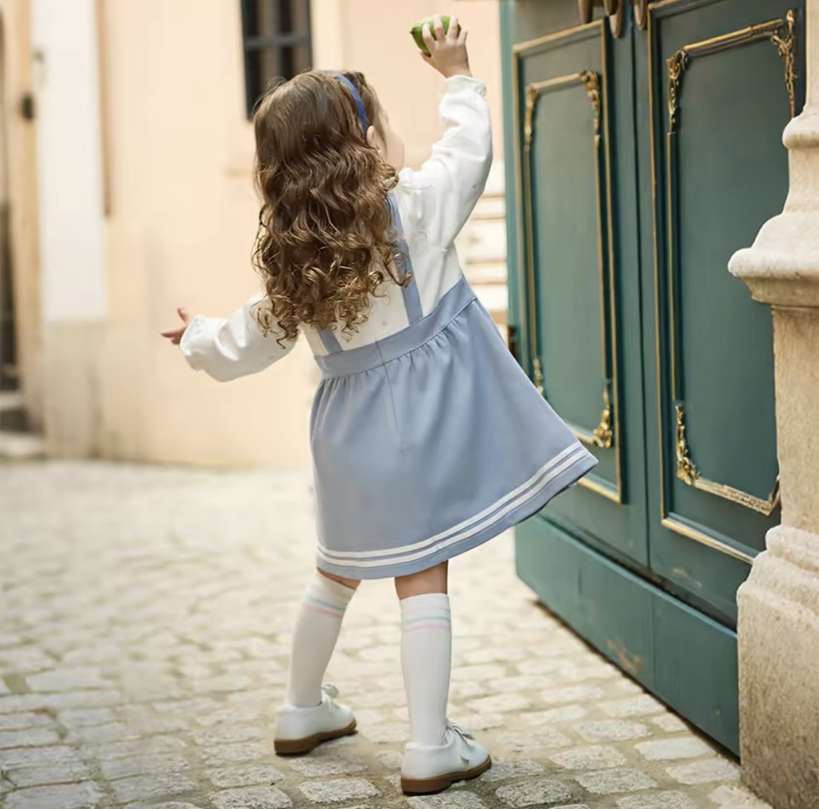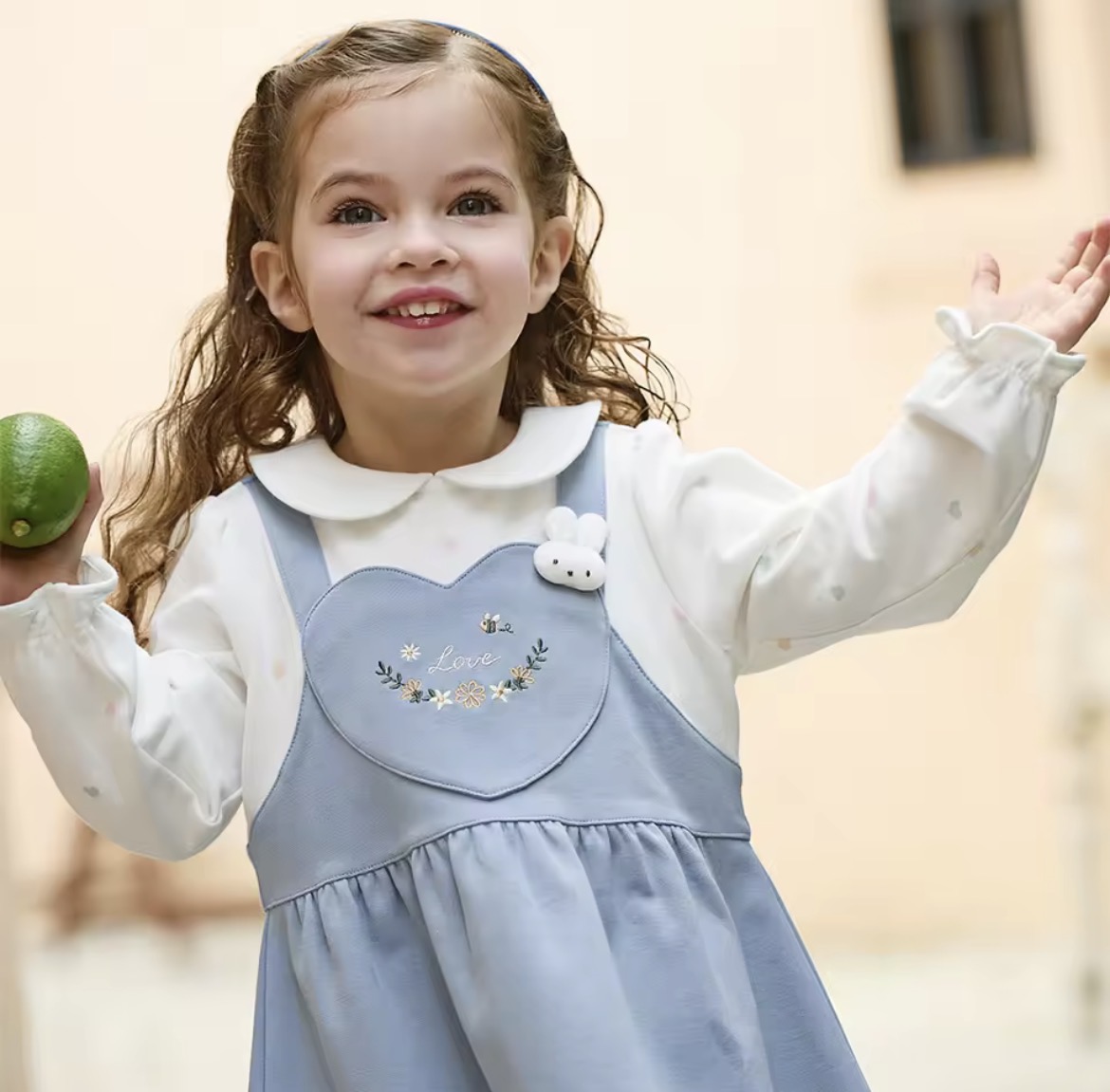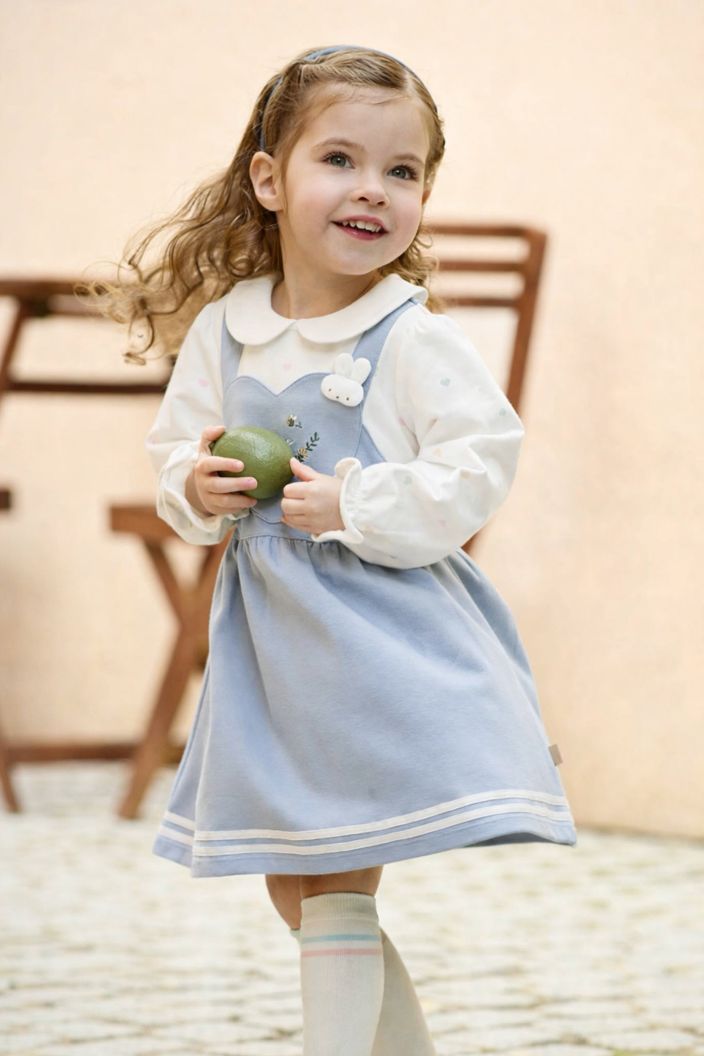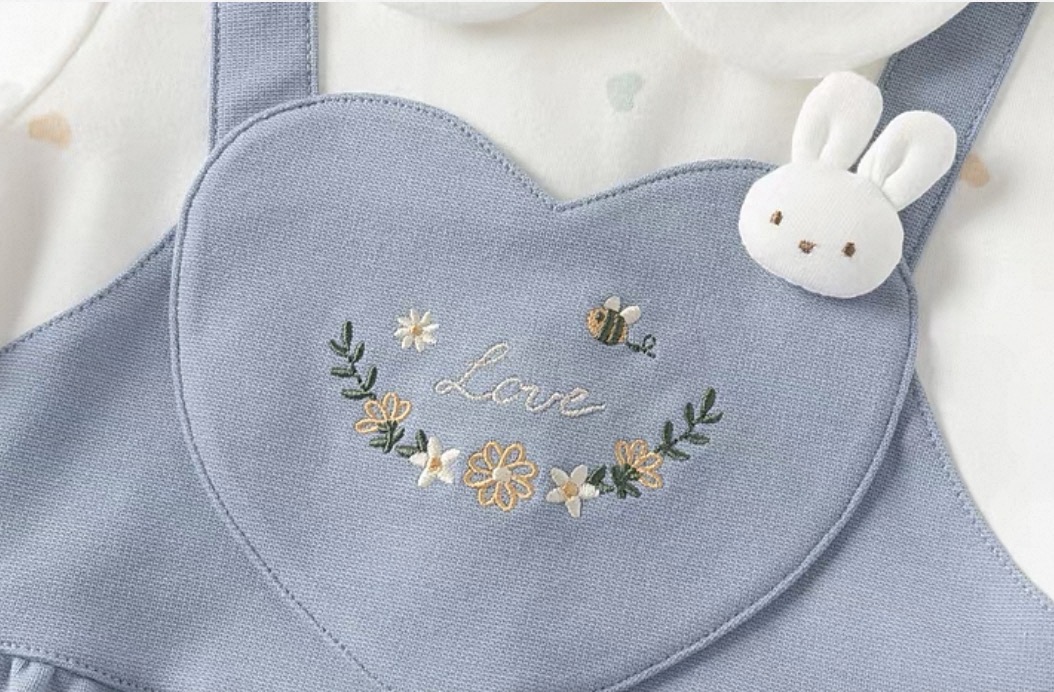 ブラウス部分にはカラフルなハートプリントをあしらい