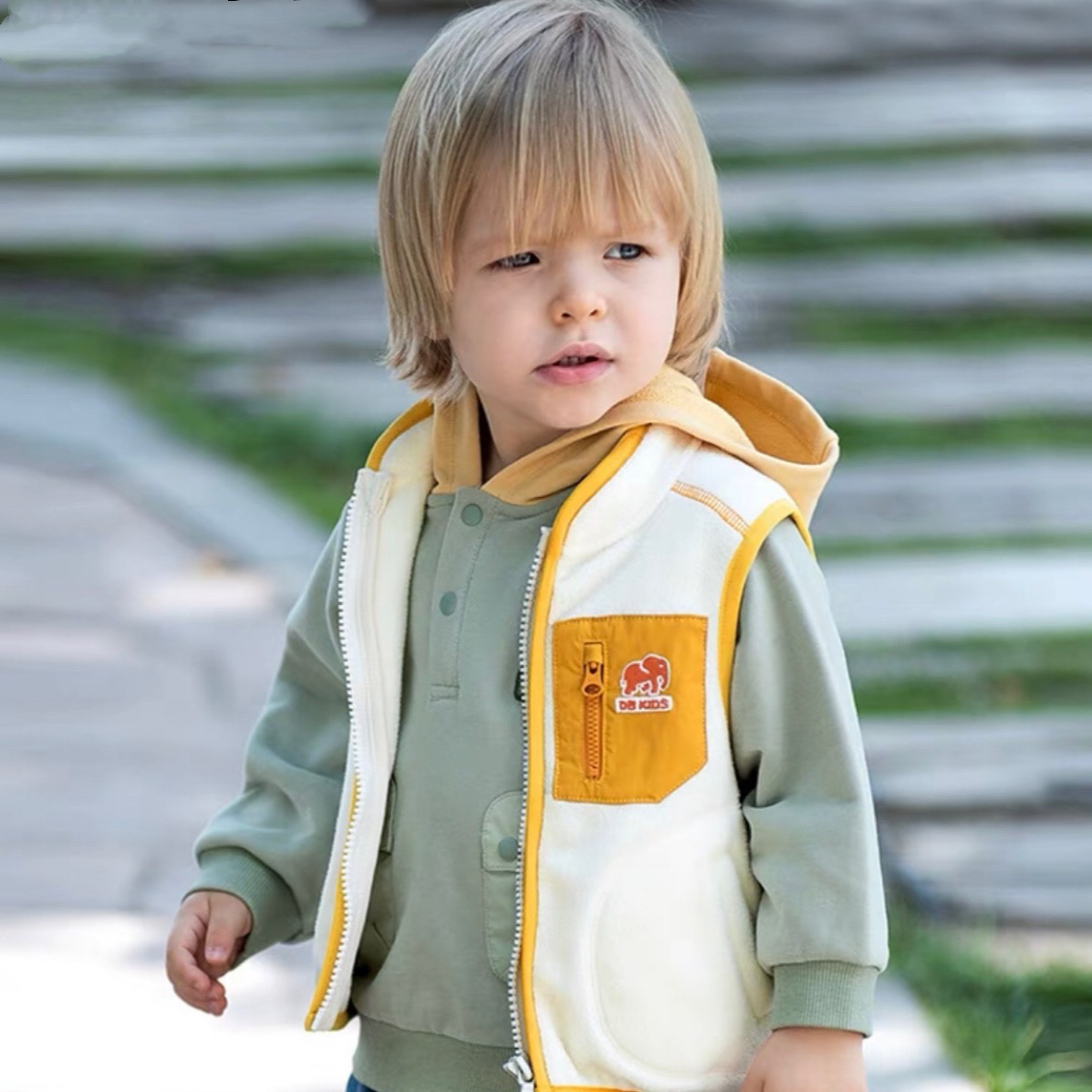 dave&bella kids 2色展開ぞうさんロゴフリースベスト DK3235875