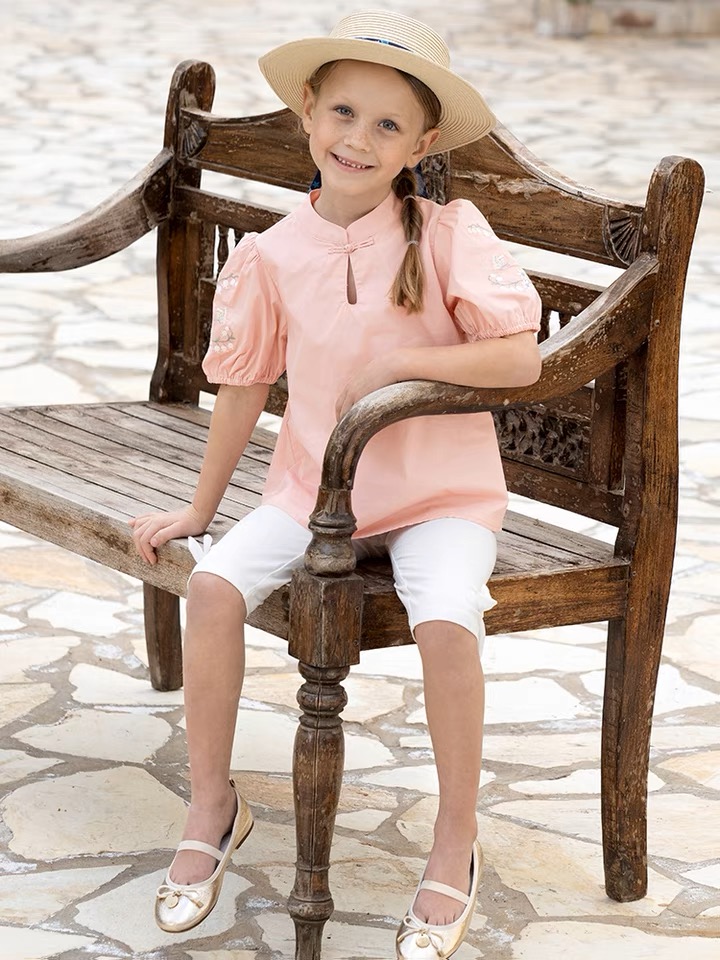 dave&bella kids リボン付きピンクカラーブラウス DK3236518