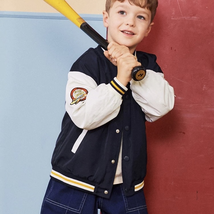 ぞうさんワッペン付きグレージュ×ブルーカラースタジャン DB1230175