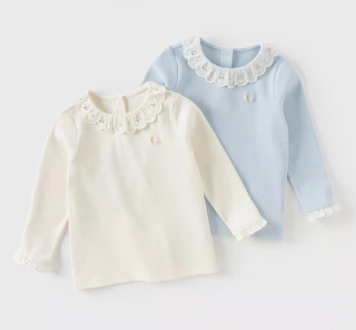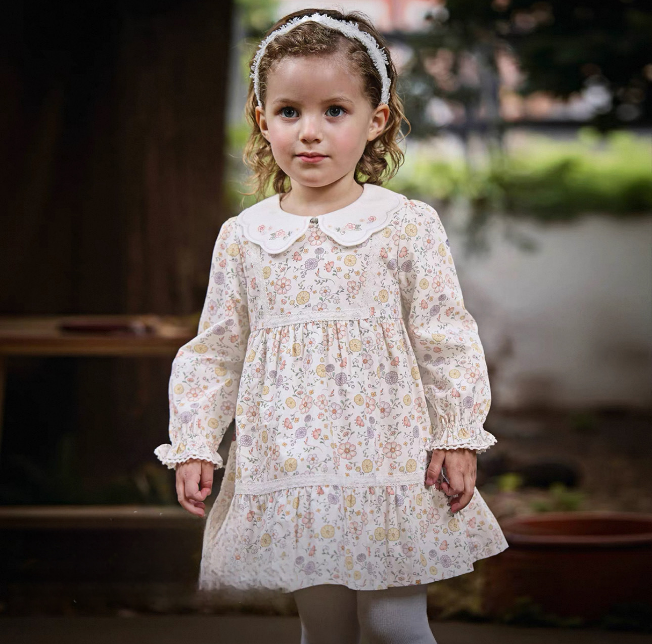 フラワー刺繍襟付き長袖ワンピース DB3253304