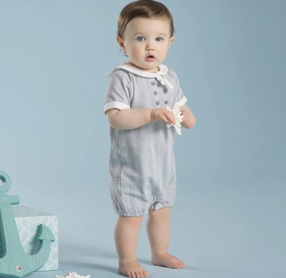 dave&bella ライトブルーカラーぞうさんロンパース DB3236215
