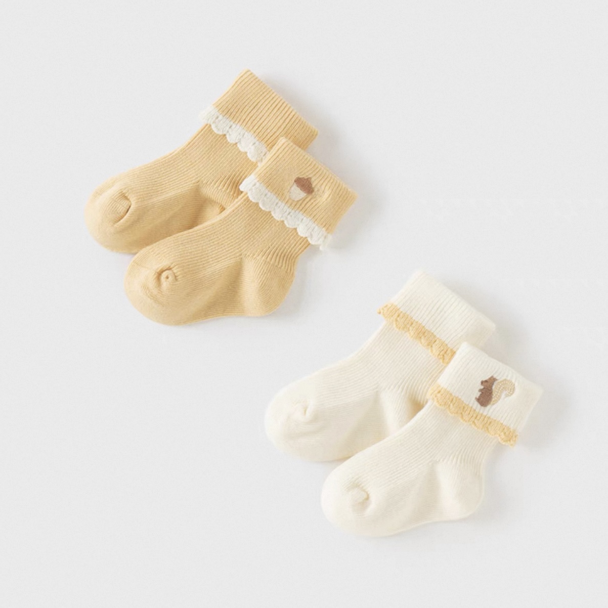 アニマル刺繍&スカラップ靴下2足セット DB3252528