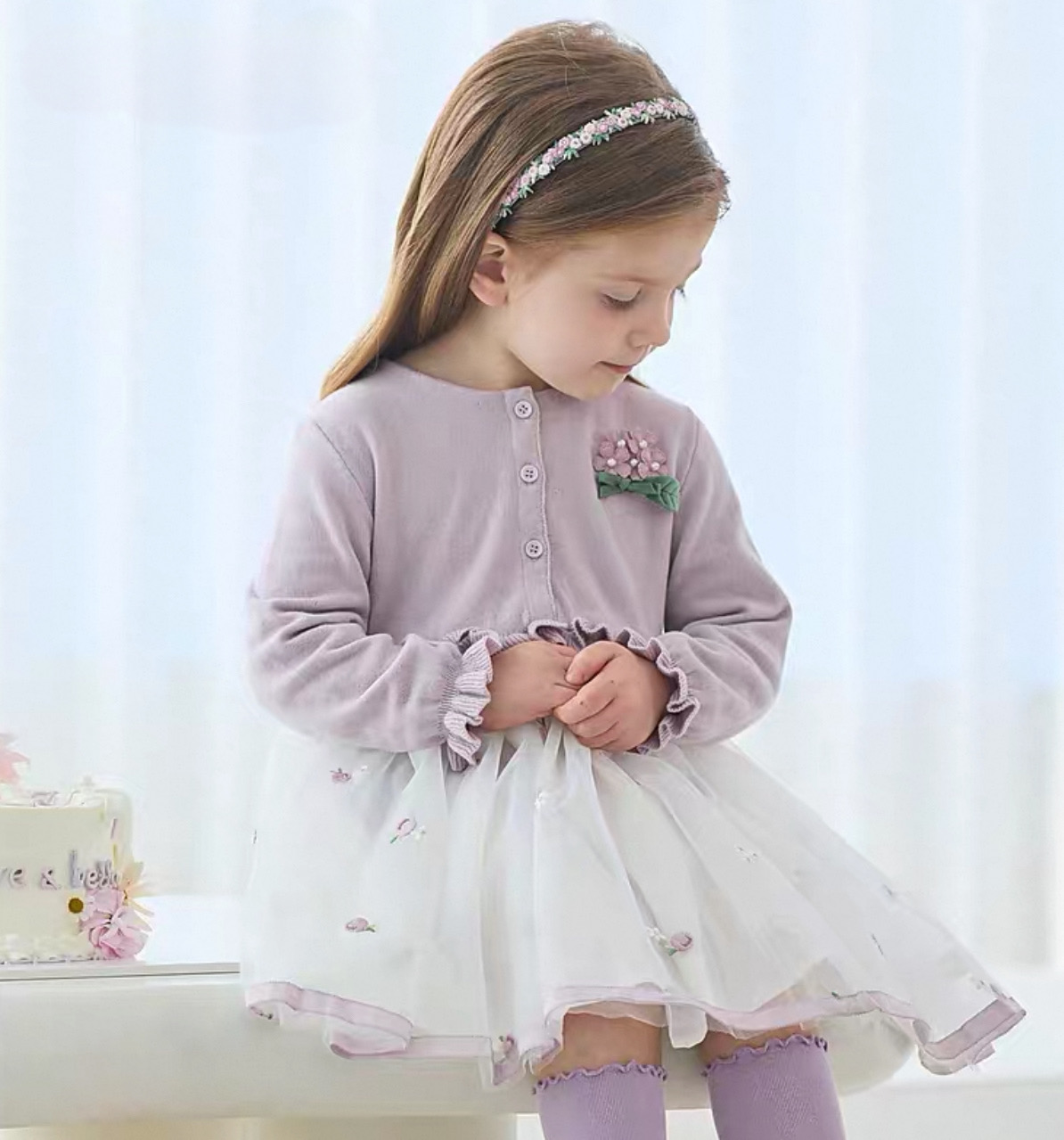 ラベンダーフラワーデザインチュールワンピース DB1250340